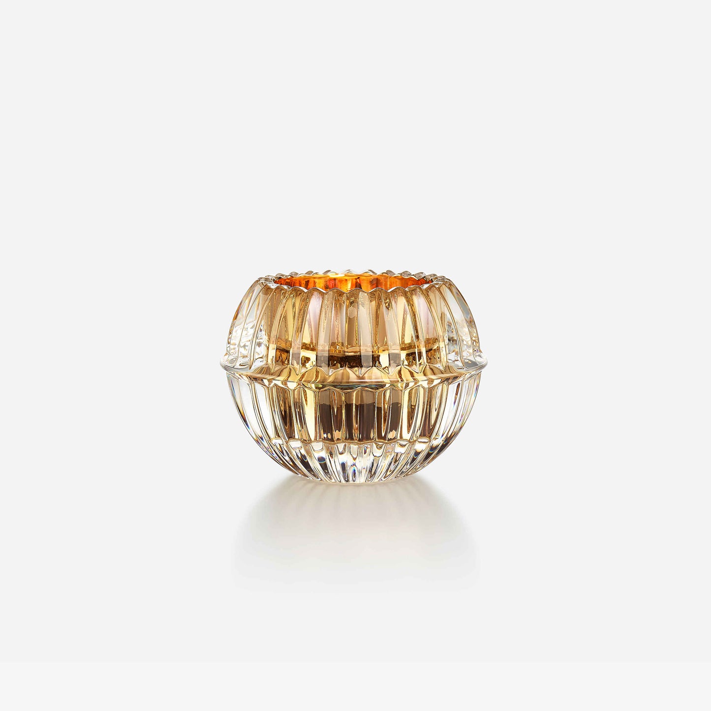Baccarat’s Clear crystal Mille Nuits votive glistens spectacularly, both with and without the incandescence of candlelight. The beveled circumference of the Clear crystal votive, gathered like petals, epitomizes Baccarat’s fine craftsmanship. The votive creates an incredible optical effect, one where the glinting crystal and the illuminated candle glow interplay resplendently, with the multifaceted crystal enhancing every fiery flicker against its ornately grooved framework. The name Mille Nuits is a reference to the 1001 Tales of The Arabian Nights, and thus to the world of the Orient. Designed by Mathias for Baccarat, the Mille Nuits collection extends to bar and stemware, and various lamps and lighting are also part of the overall Mille Nuits collection.