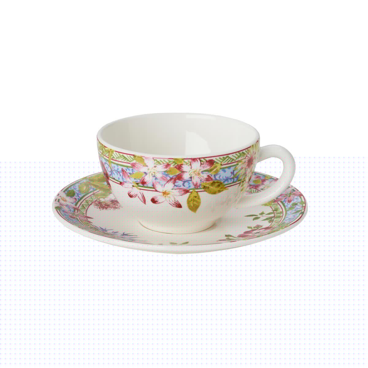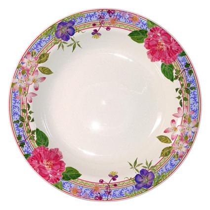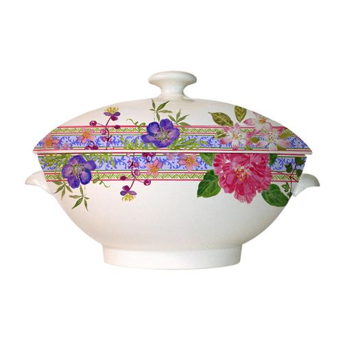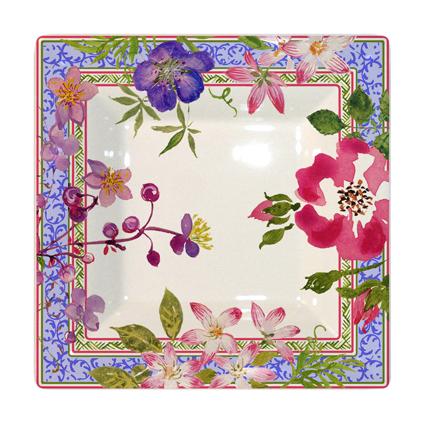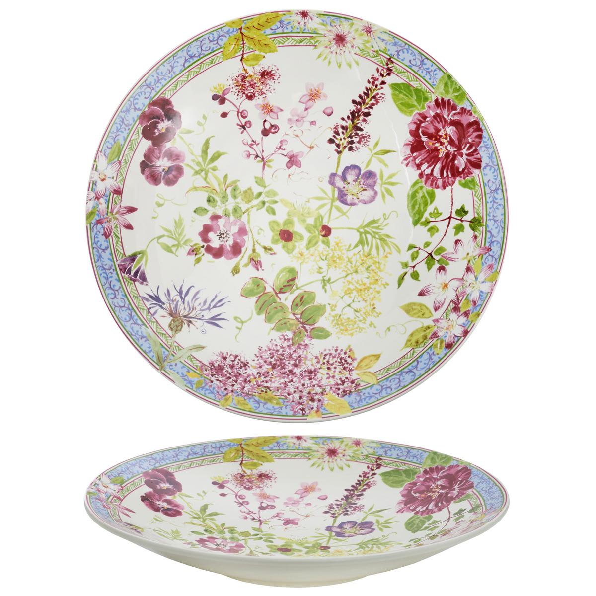 An abundance of flowers - pansies, roses, blueberries, geraniums, camellias... edged in vintage blue. An exquisitely beautiful pattern, Millefleurs offers a wide selection of colorful pieces to adorn your table and your home. A timeless theme and universal design.
