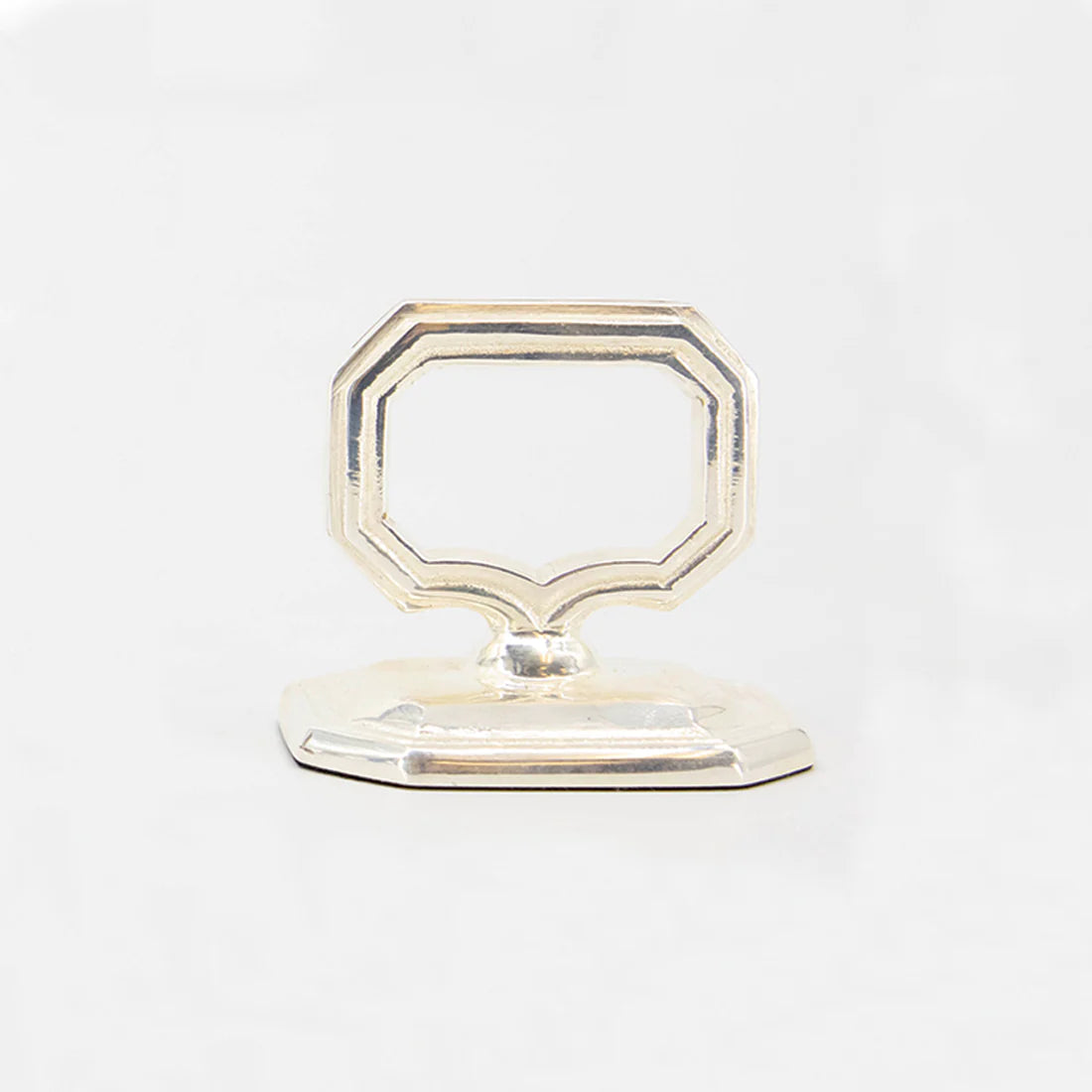 We were inspired by vintage silver-plate finials typically seen on antique serveware to create our napkin ring that has the added benefit of also holding a place card.