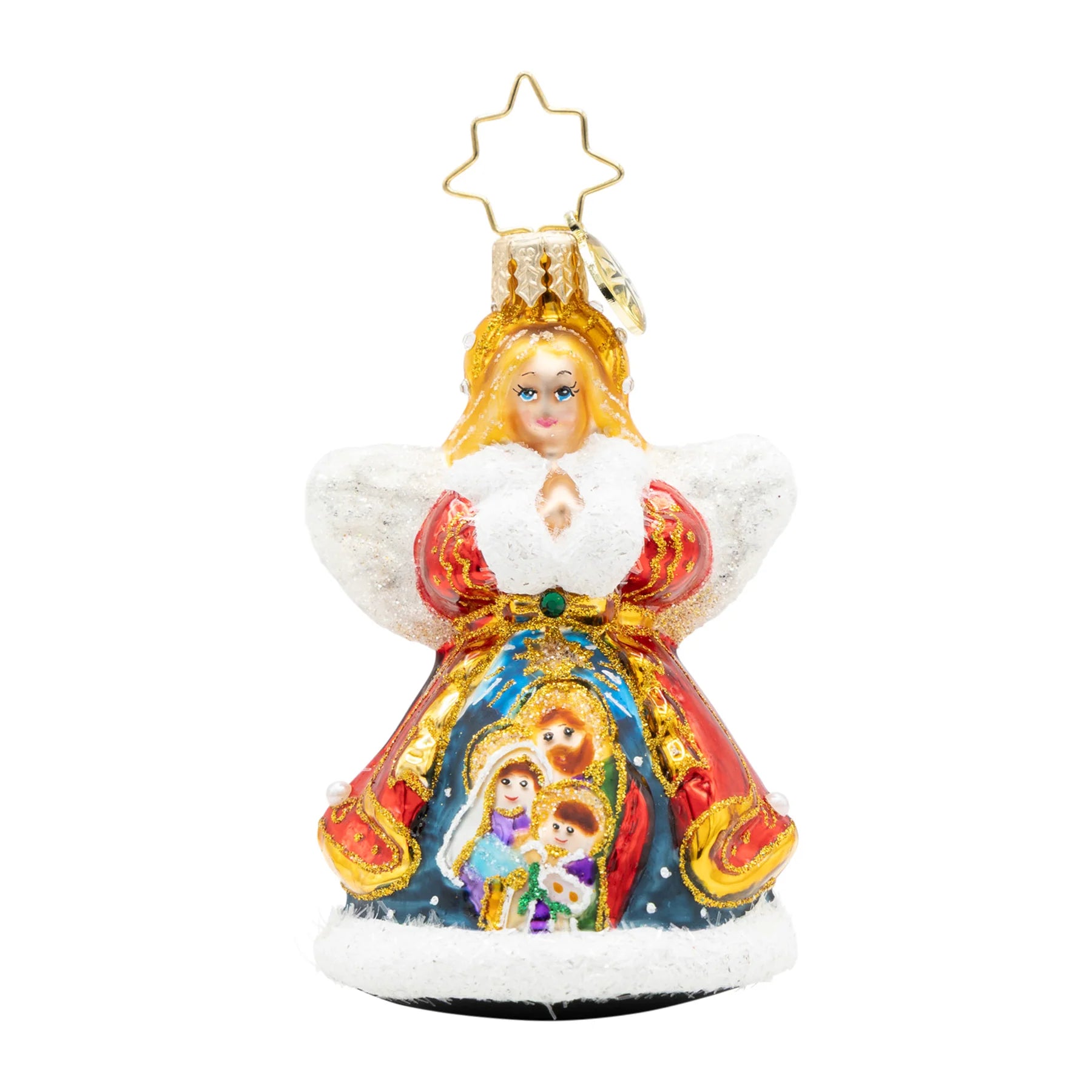 Let Nativity Guardian Gem watch over your holidays. With a serene nativity scene on her coat, this angel brings heavenly peace to your home.