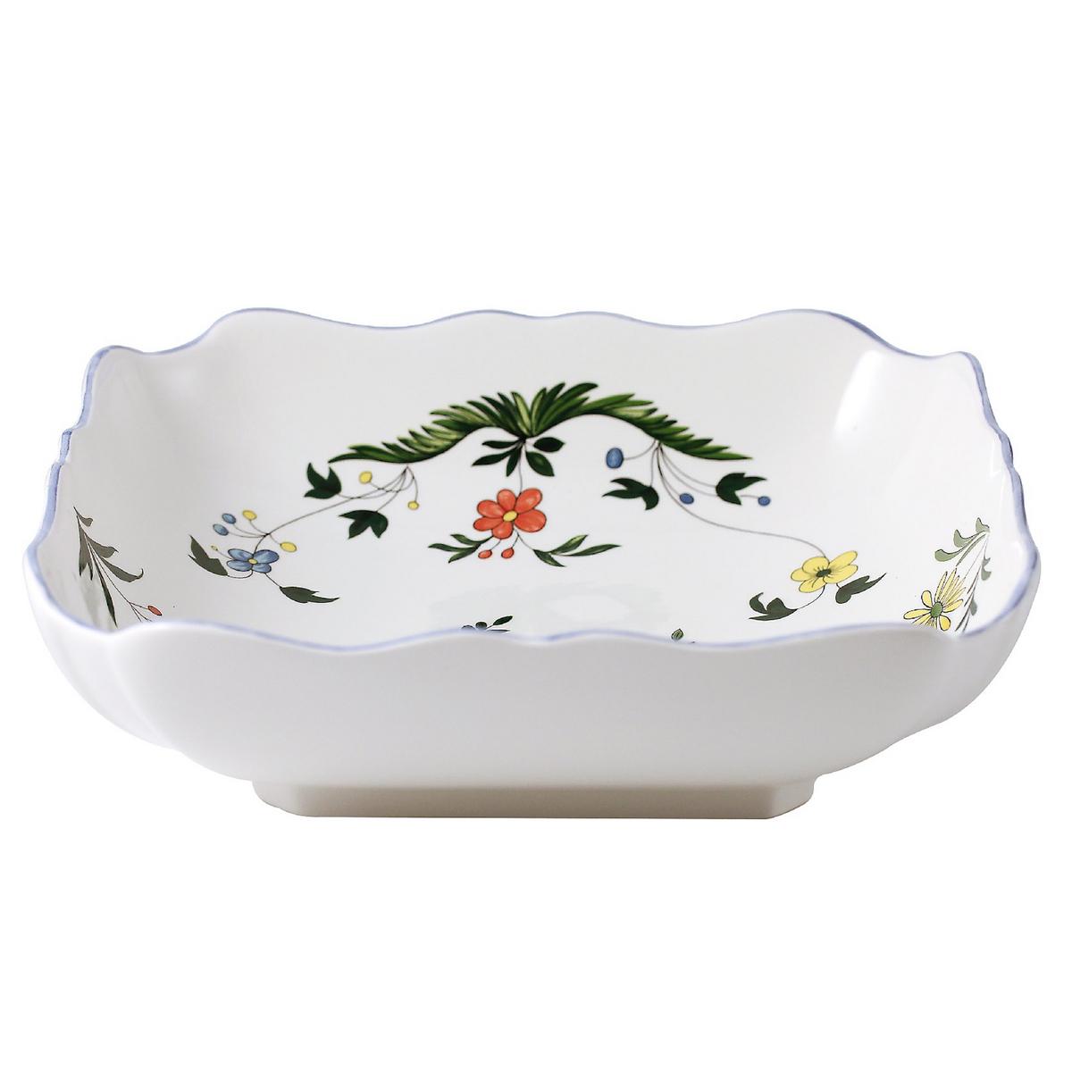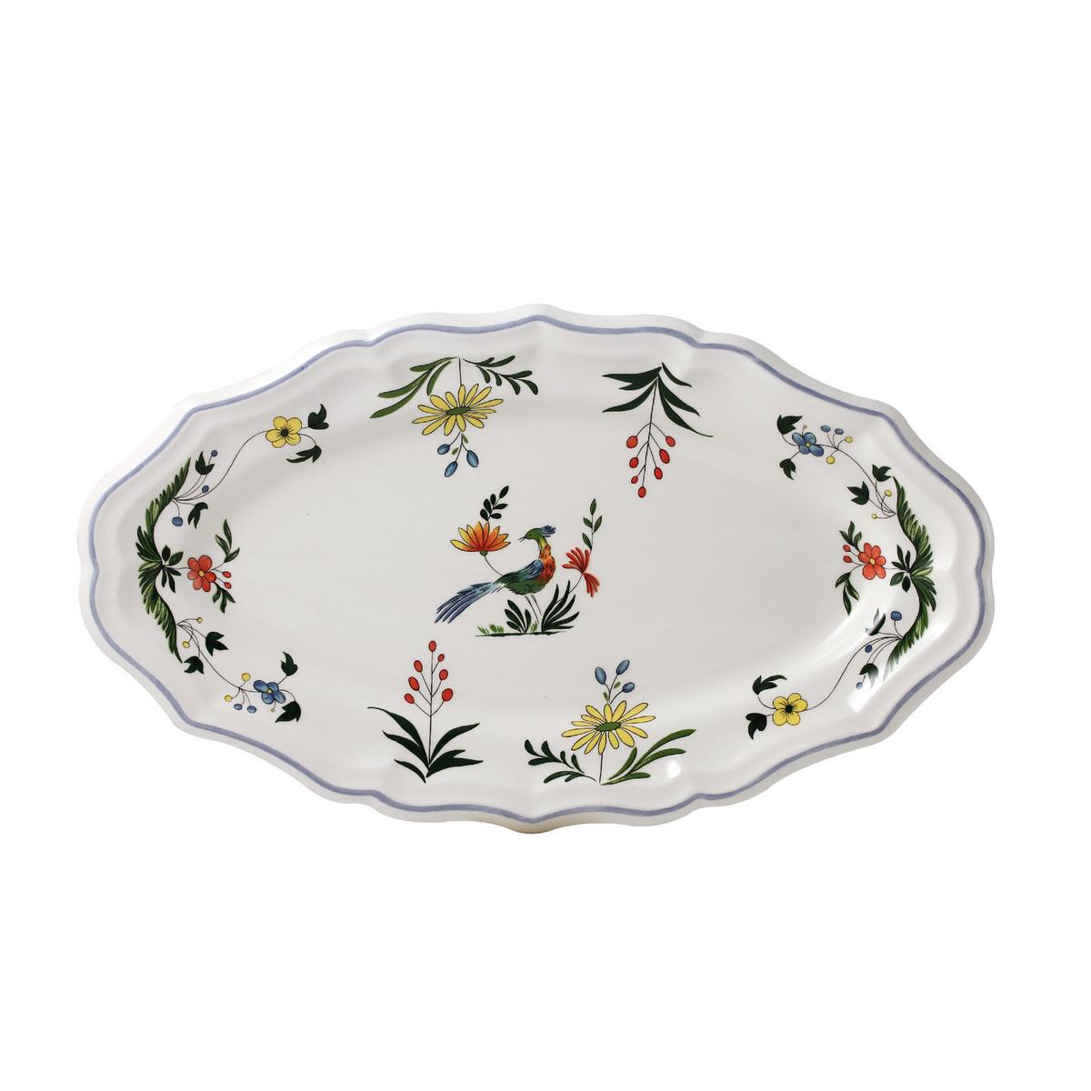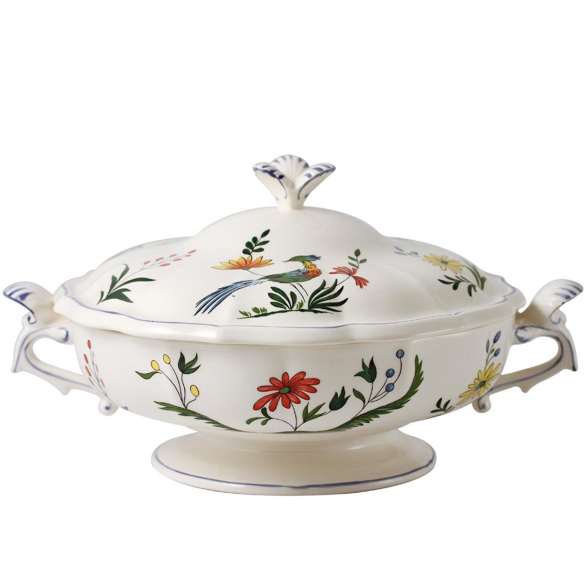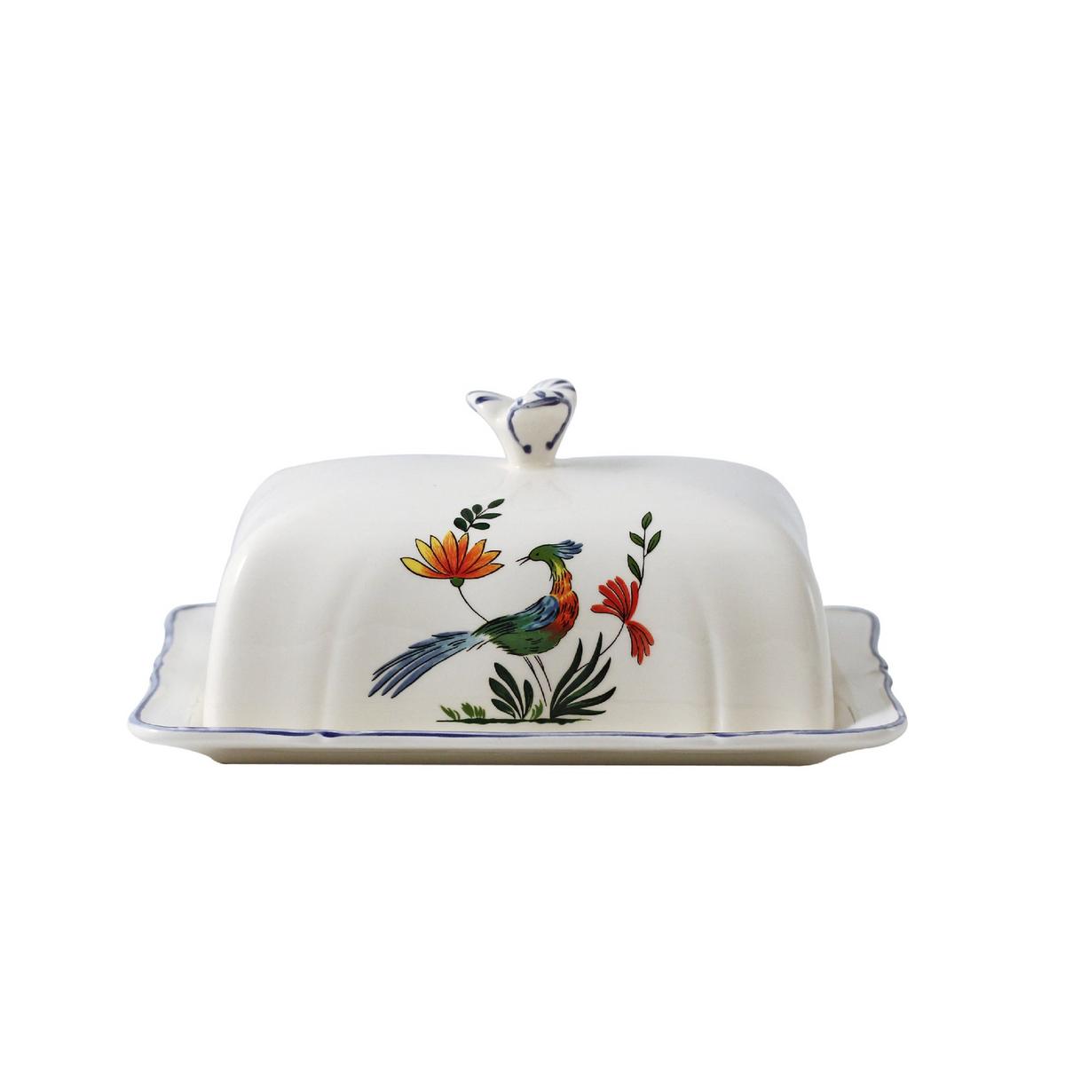 A singing bird evolves on a background of branches and geometric patterns. This soft blue design is enhanced with succulent fruits, cherries, figs, strawberries and blackberries, bringing a joyful burst of color.