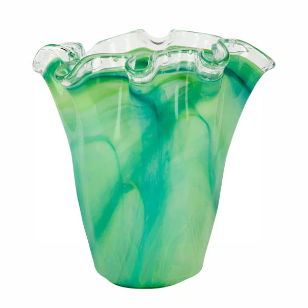 Reminiscent of the waves crashing on the island of Capri, the organic shape of the Onda Glass Ruffled Vase mimics the beauty of Italy’s coastline.