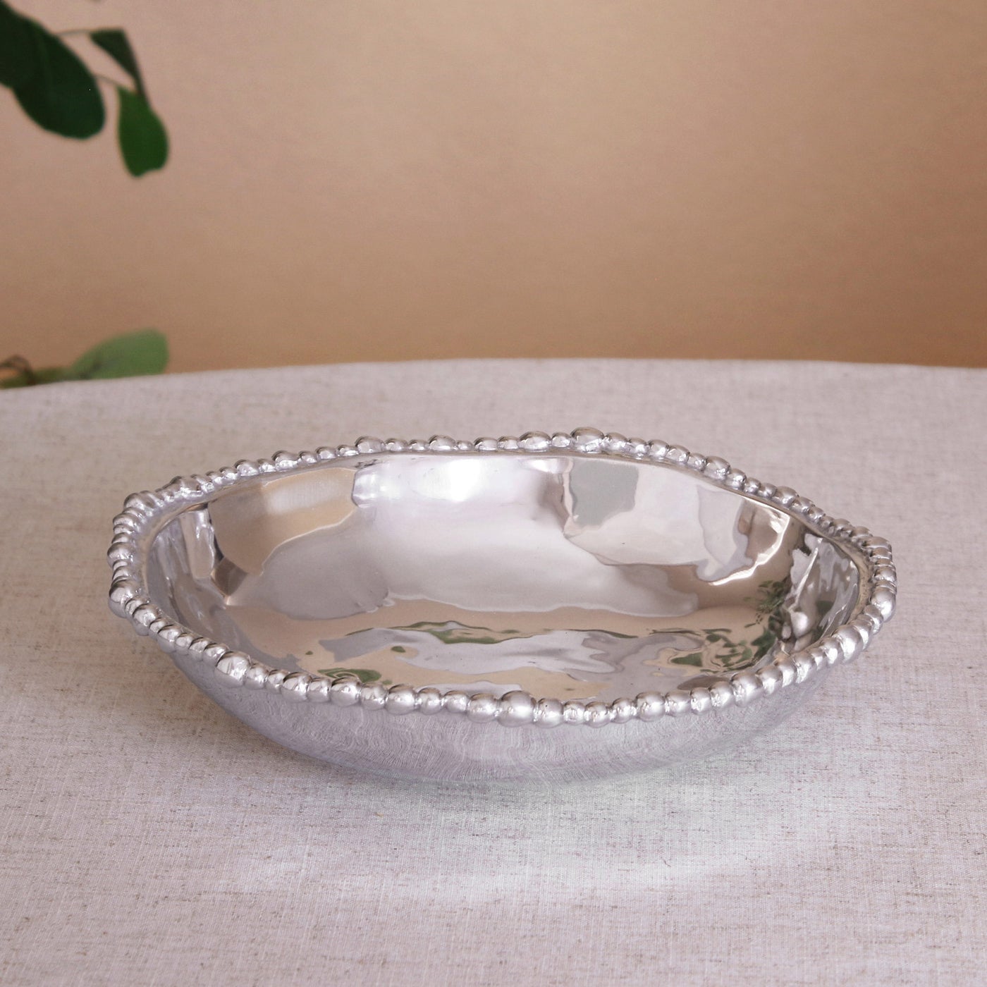 Our ORGANIC PEARL Medium Pasta Bowl is so versatile, it will quickly become a favorite. A fabulous addition to Beatriz Ball's bestselling ORGANIC PEARL Collection of signature metalware, its size makes it ideal for pasta, but it is equally suited to salads, rice dishes, and more. With an interesting shape rimmed with metal pearls and its handy size, the versatile bowl may be paired with the ORGANIC PEARL Large Pasta Bowl in metal or the VIDA Alegria Pasta Bowl Set of 4 (White) in luxury melamine. Use it for snacks, baked goods and more. A multiuse design you'll reach for everyday! An original Beatriz Ball design sustainably handmade of an FDA safe, easy-care, oven and freezer friendly aluminum alloy.