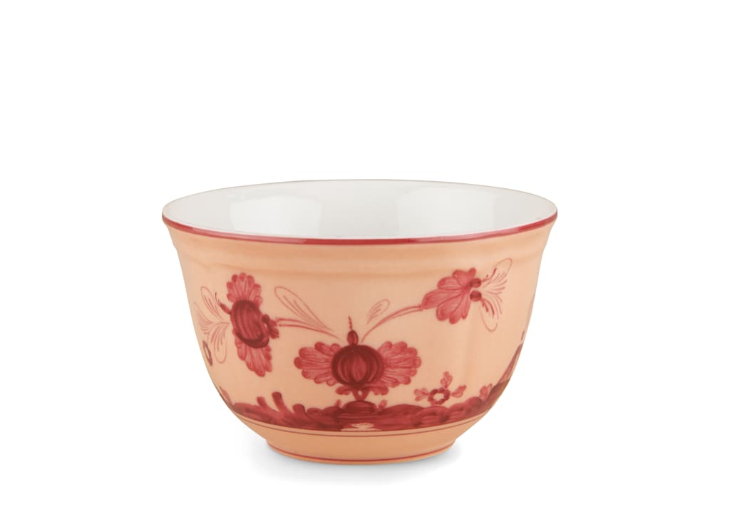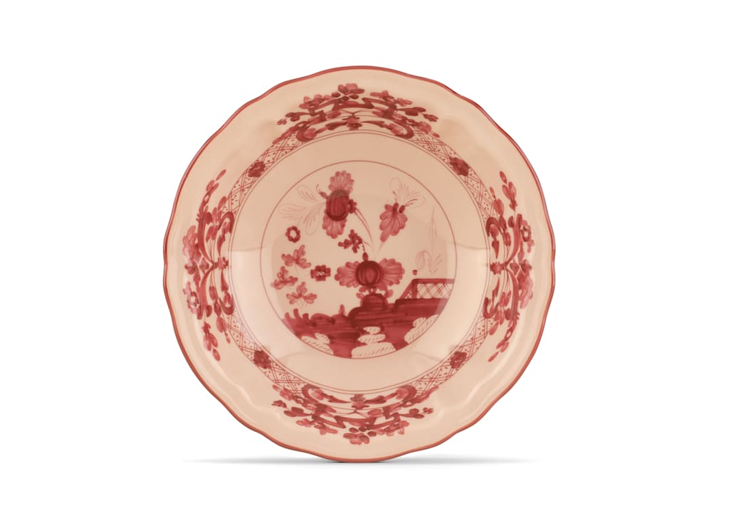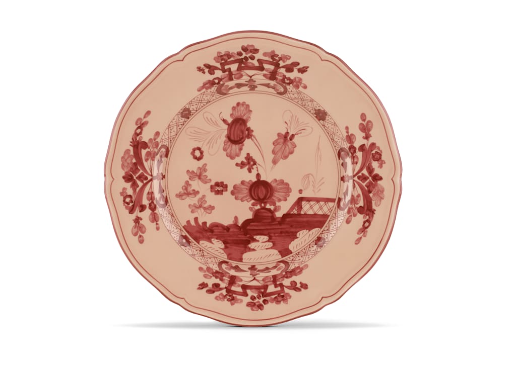 A lush and colorful garden of exotic flowers, an exuberant and uncommon party on the lawn. With Oriente Italiano collection, we wanted to dare, and in daring we established a style that combines two elements of the artistic tradition of Italy - the elegance of the lines from the Antico Doccia Ginori collection and the delicate charm of the Garofano, a floral motif typical of Faenza ceramics and inspired by a fantastical oriental garden - in the explosiveness of the colors that animate the porcelain plates, the cups and all of the other items in the Ginori Oriente Italiano collection.
