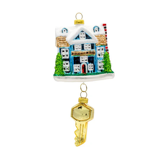 Celebrate your new home with our adorable house ornament featuring a sparkling, dangling key. A charming and sentimental addition to any Christmas tree, this keepsake will be treasured for years to come.