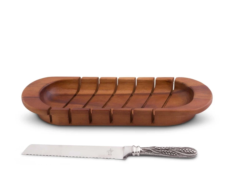 Oval Loaf Bread Board with Pewter Wheat Knife