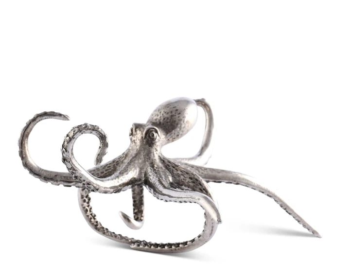 Vagabond House's delightful pewter Octopus Napkin Rings are delicately detailed; the octopi have curled tentacles with realistic suckers, beautifully pebbled skin and wise, soulful eyes.