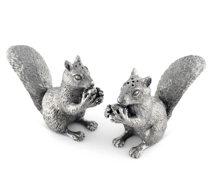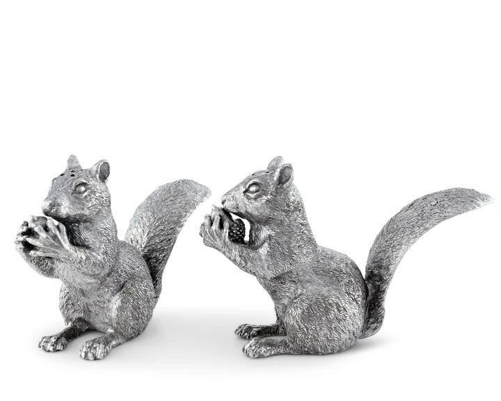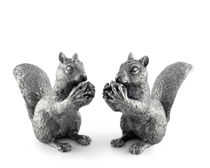 Our Snacking Squirrel Salt and Pepper Set is charming and a little comical. The amazing detail of this happily munching pair makes us crave a salty snack too.