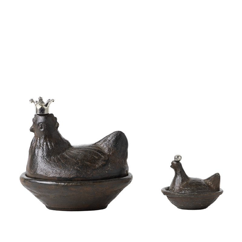Wax cast crowned chick nested inside the 'queen mother' hen . . . for a pinch of salt, a safe place for wedding bands, a daily dose of vitamins . . .