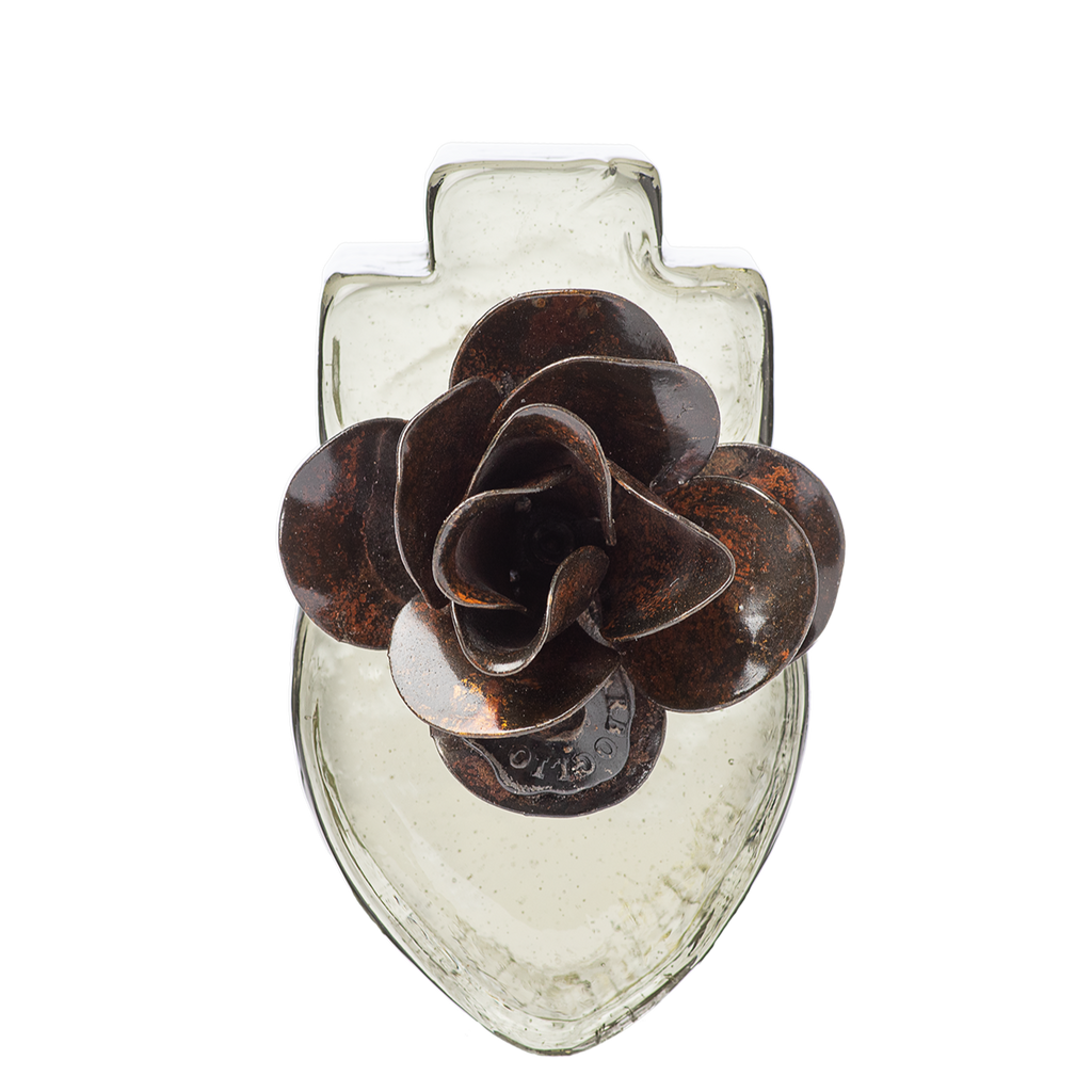 Thick, rippled mouth blown glass Bendita Vida boxed blessing topped with a blooming rose . . . Illuminate your life.