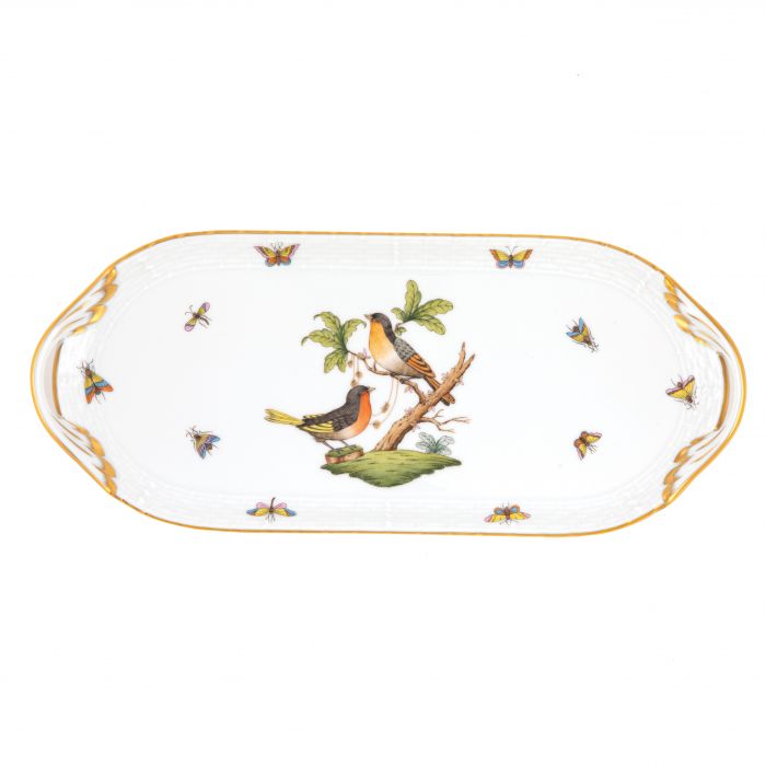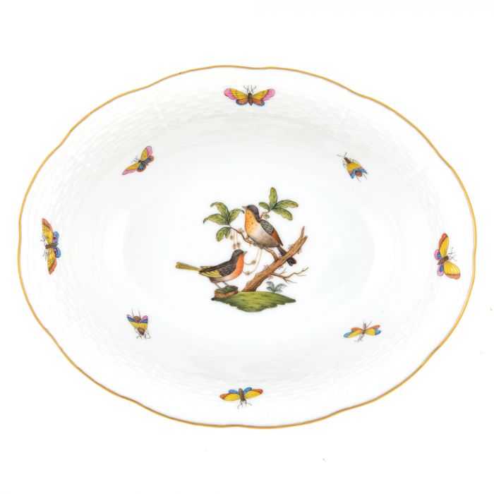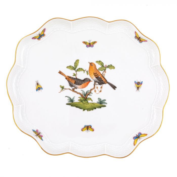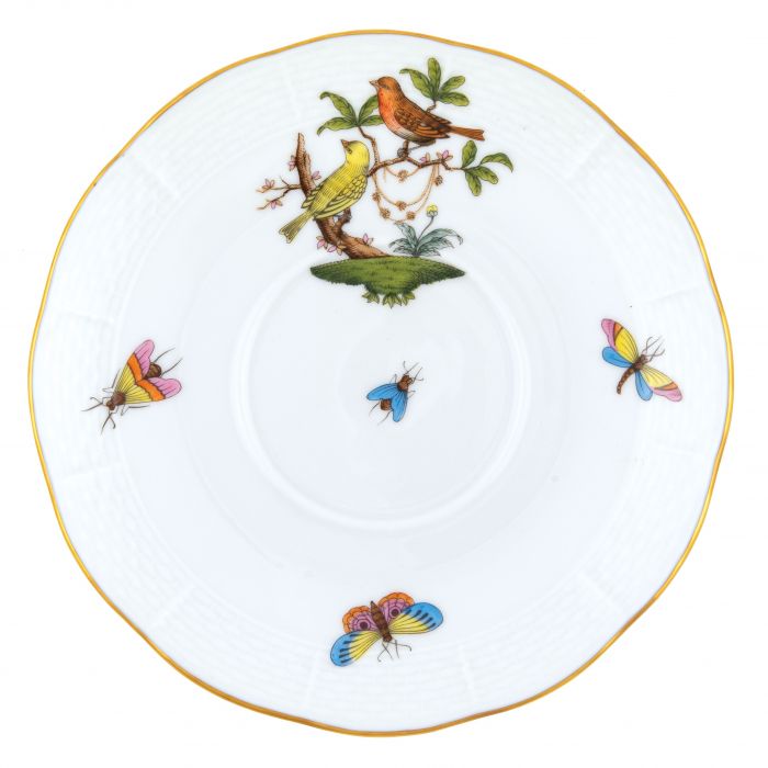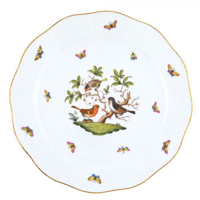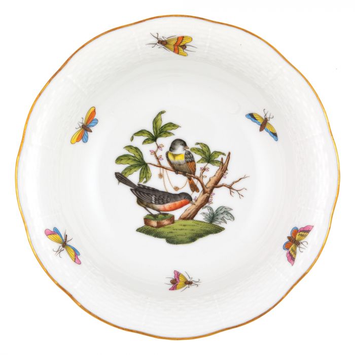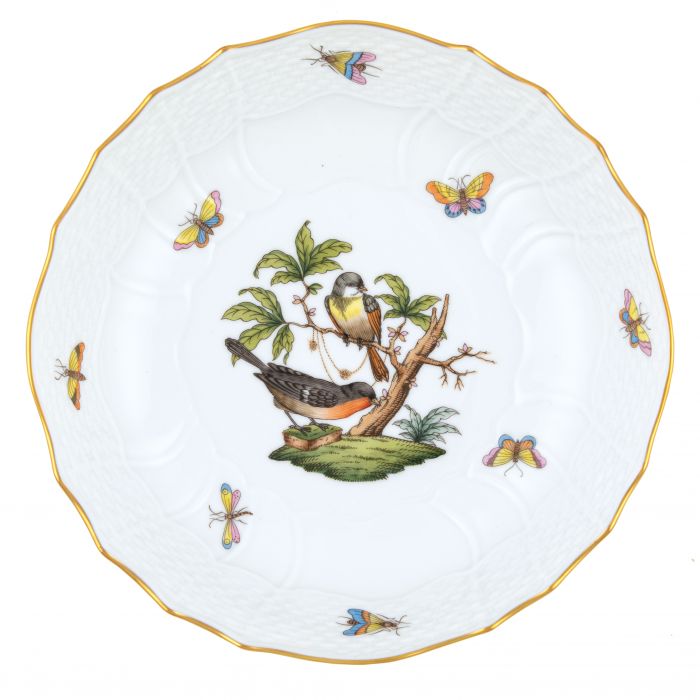 Many connoisseurs consider this pattern, first created in 1860 for the Rothschild family of Europe, to be the epitome of hand painting on porcelain. Twelve different motifs portray a 19th century tale about Baroness Rothschild, who lost her pearl necklace in the garden of her Vienna residence. Several days later it was found by her gardener, who saw birds playing with it in a tree.