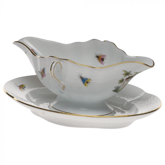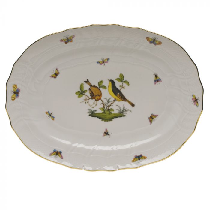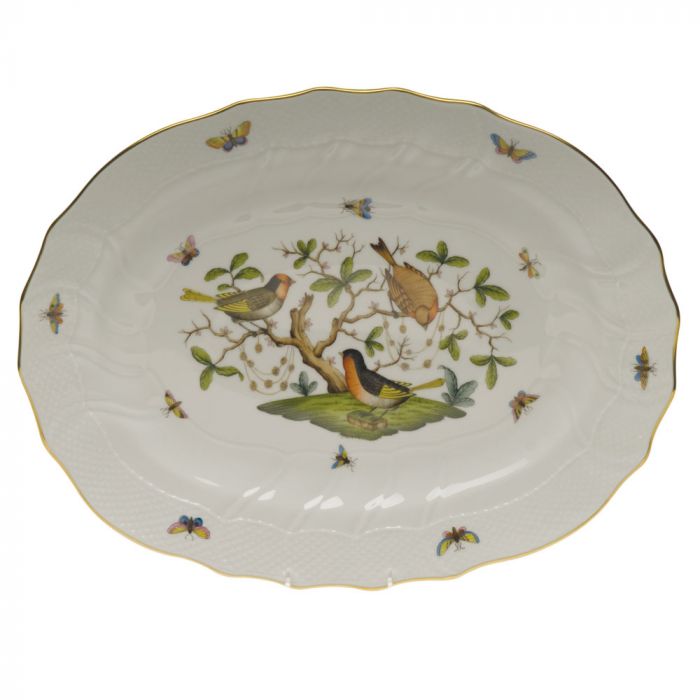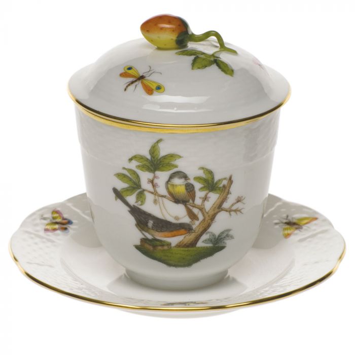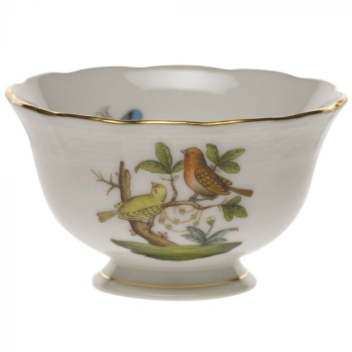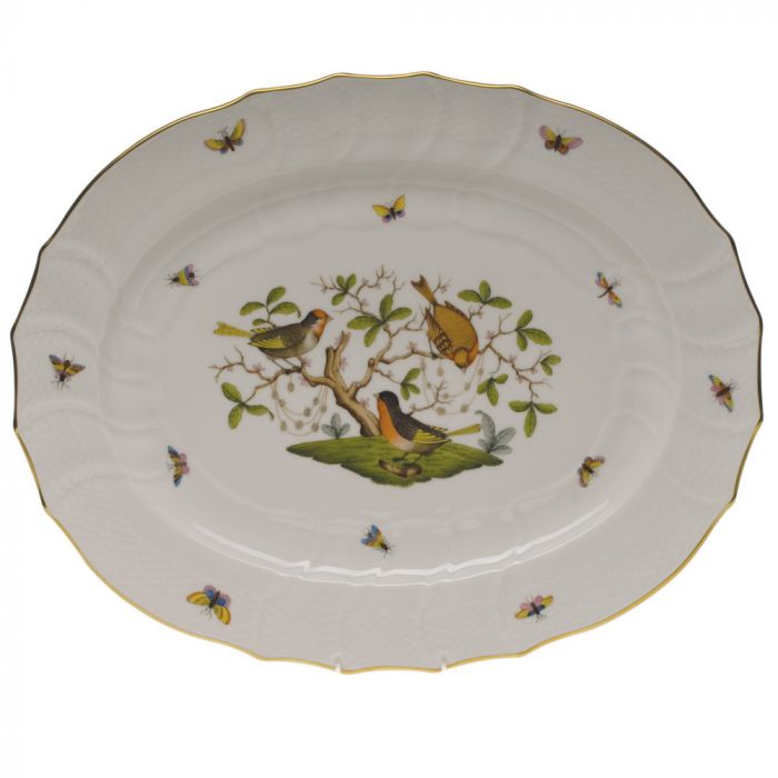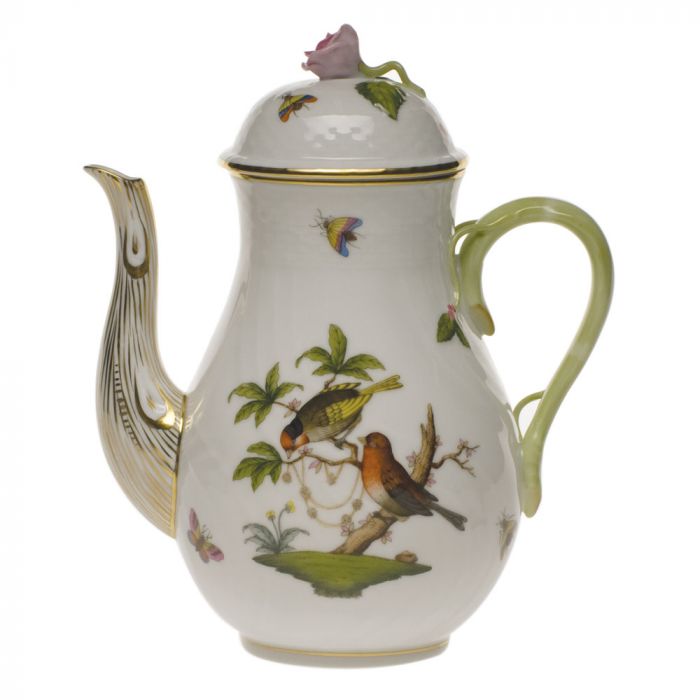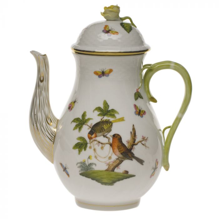 Many connoisseurs consider this pattern, first created in 1860 for the Rothschild family of Europe, to be the epitome of hand painting on porcelain. Twelve different motifs portray a 19th century tale about Baroness Rothschild, who lost her pearl necklace in the garden of her Vienna residence. Several days later it was found by her gardener, who saw birds playing with it in a tree.