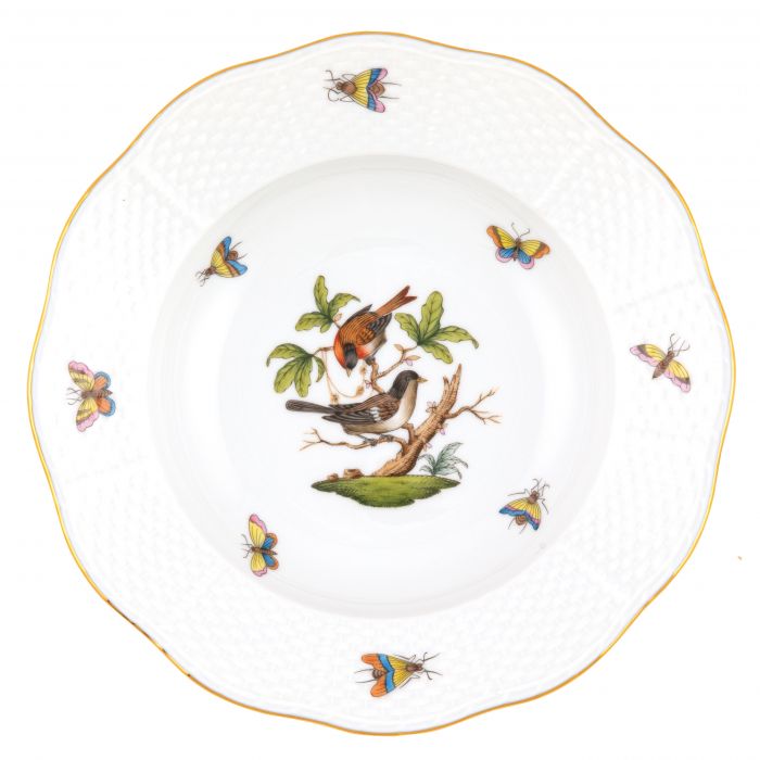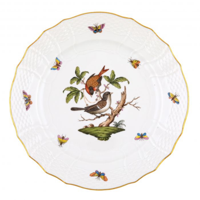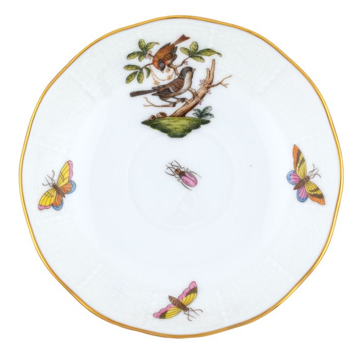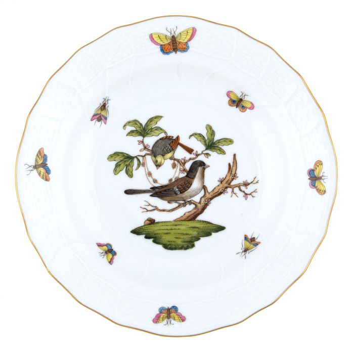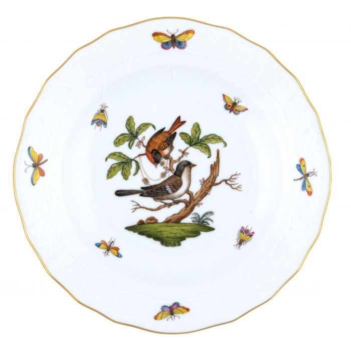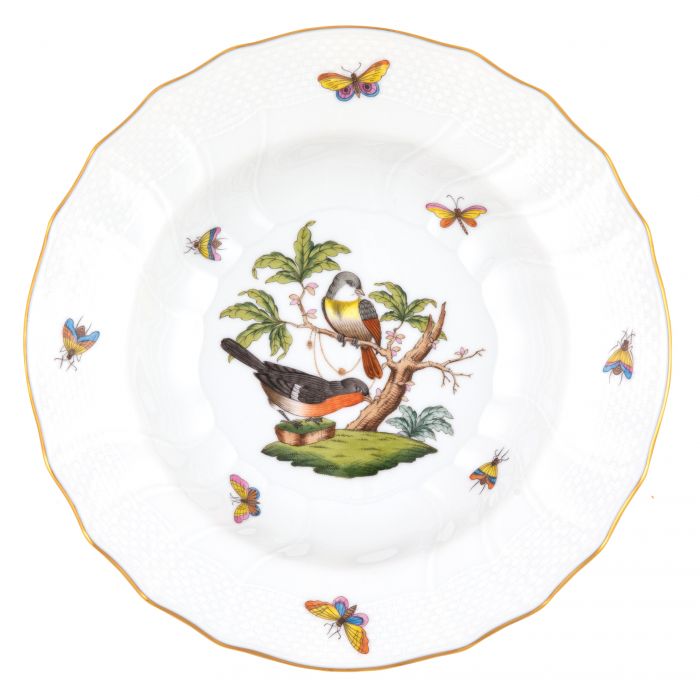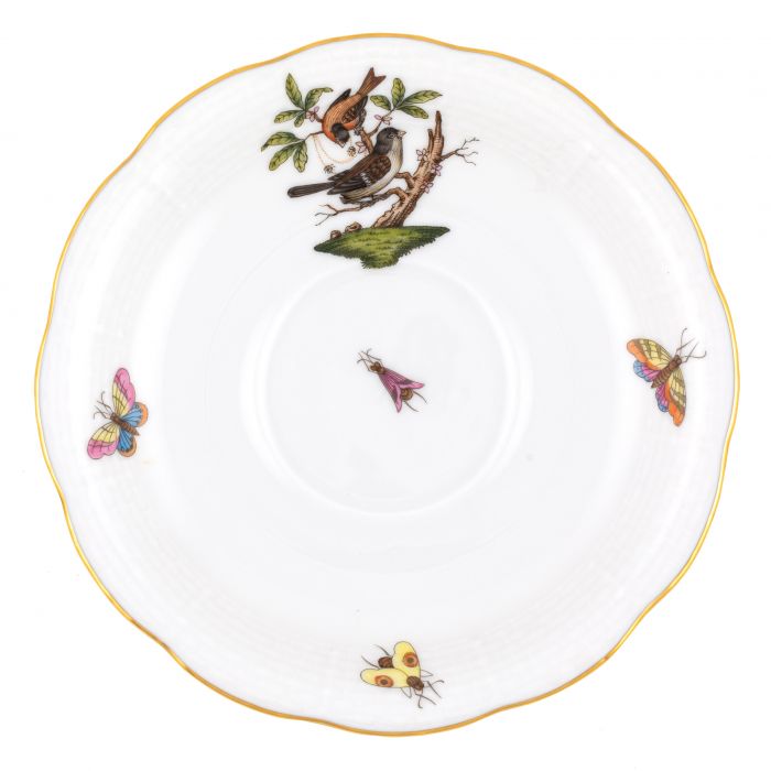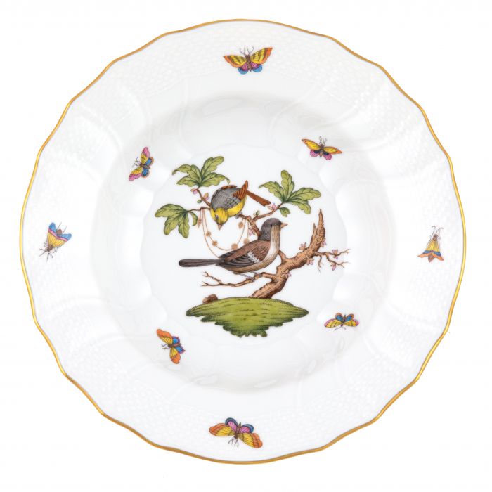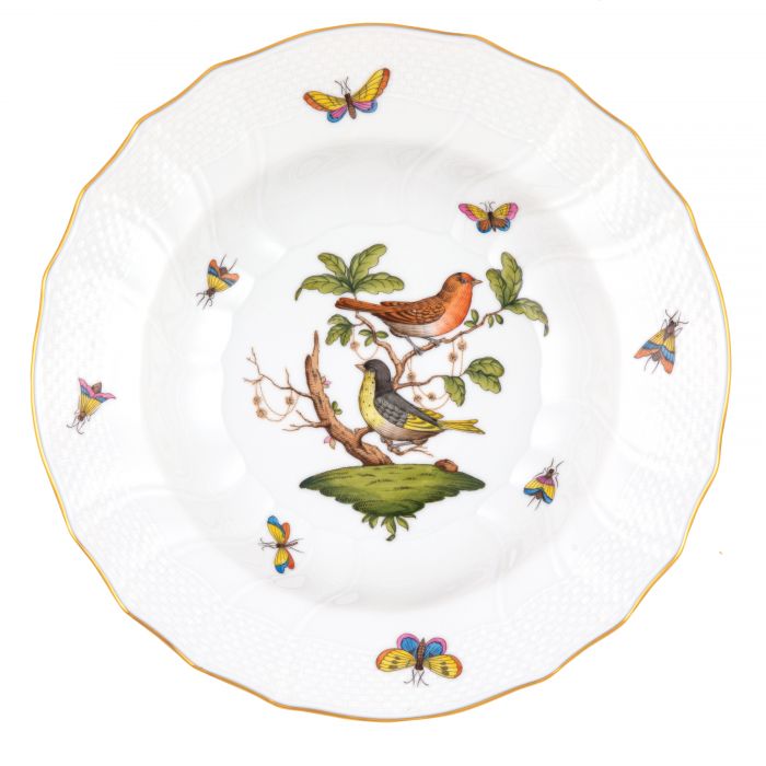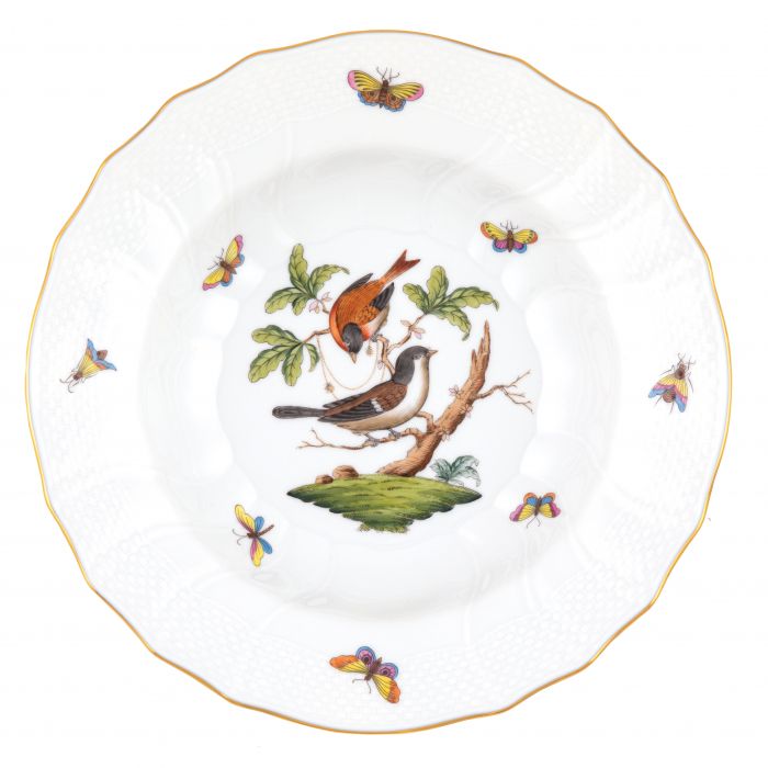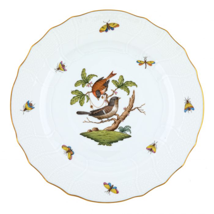 Many connoisseurs consider this pattern, first created in 1860 for the Rothschild family of Europe, to be the epitome of hand painting on porcelain. Twelve different motifs portray a 19th century tale about Baroness Rothschild, who lost her pearl necklace in the garden of her Vienna residence. Several days later it was found by her gardener, who saw birds playing with it in a tree.
