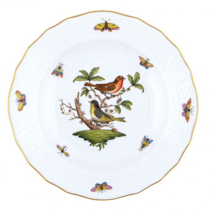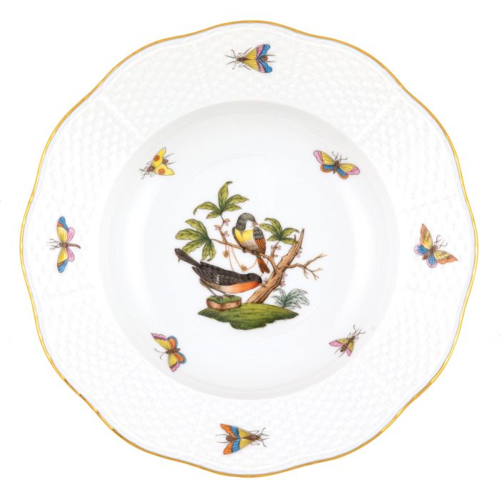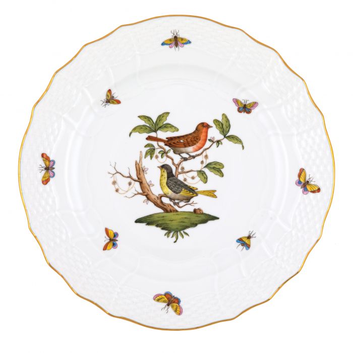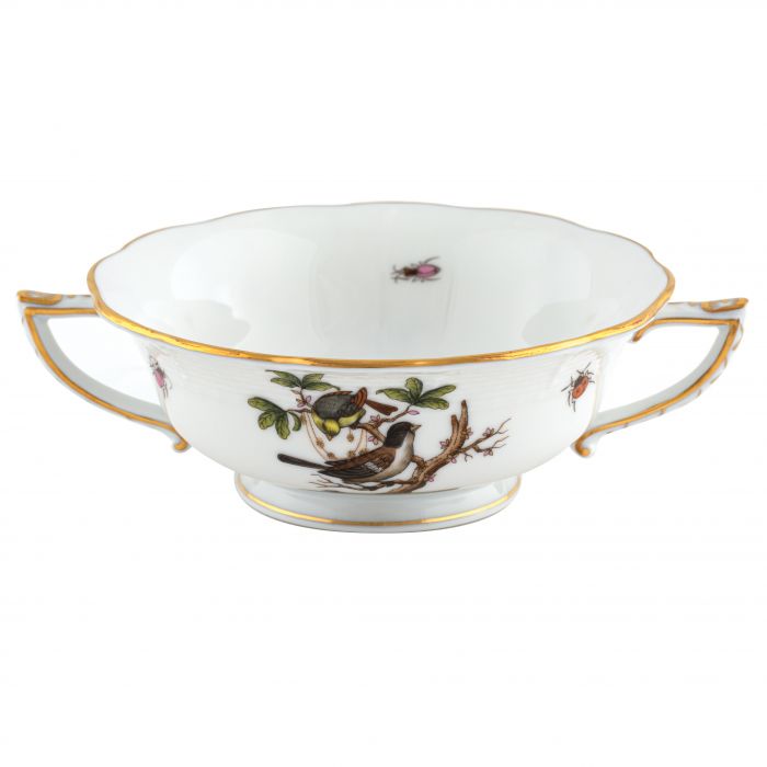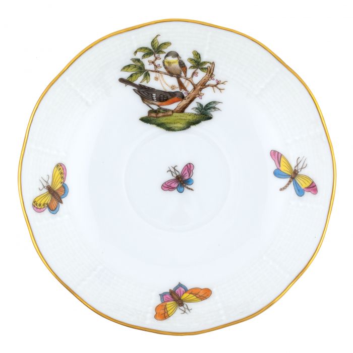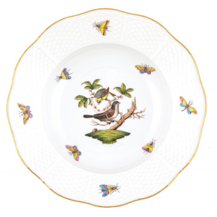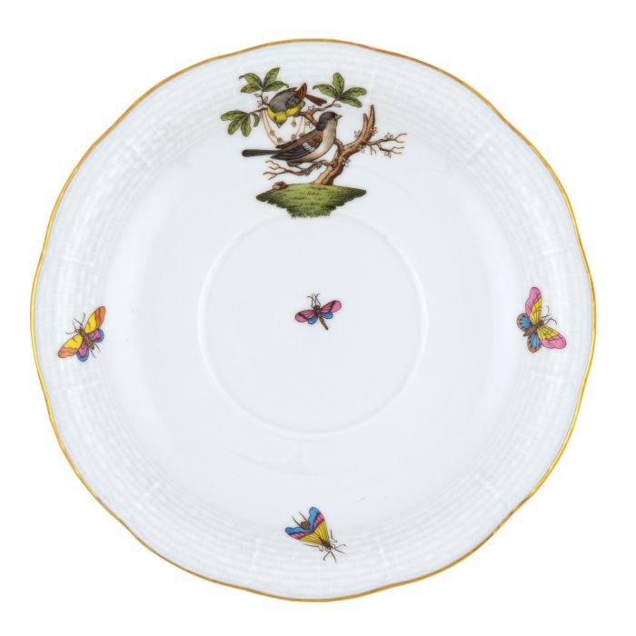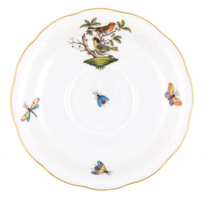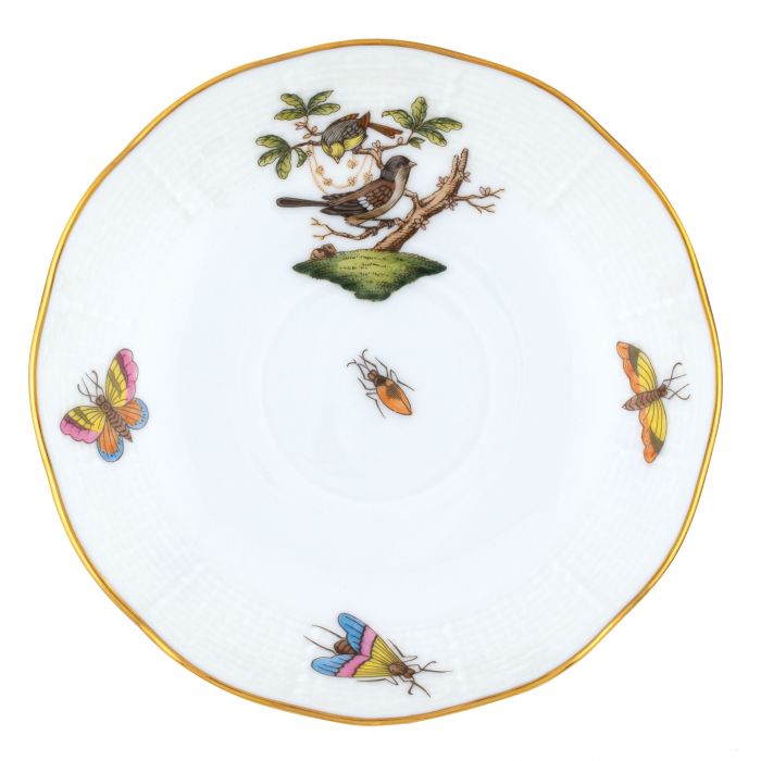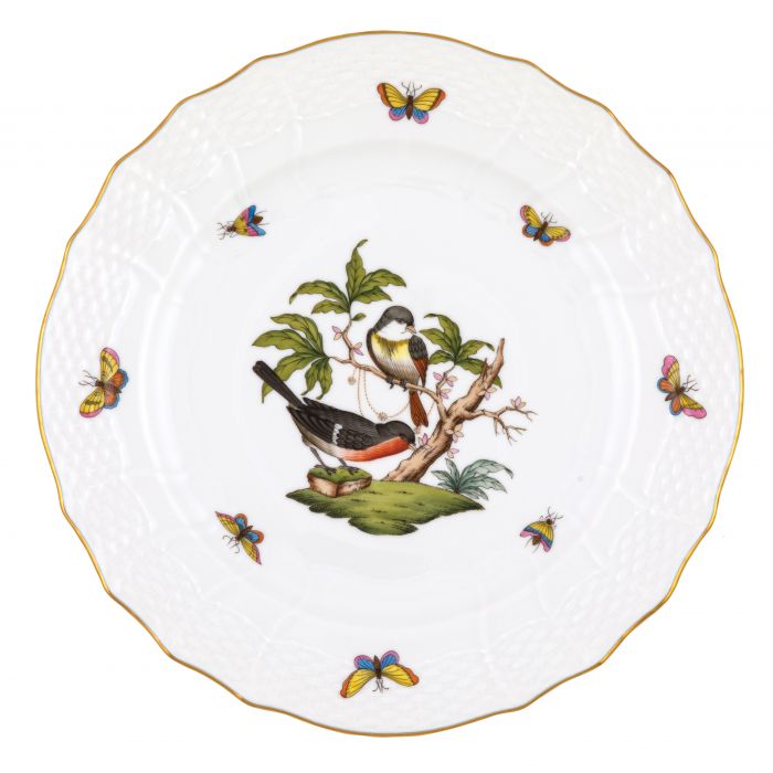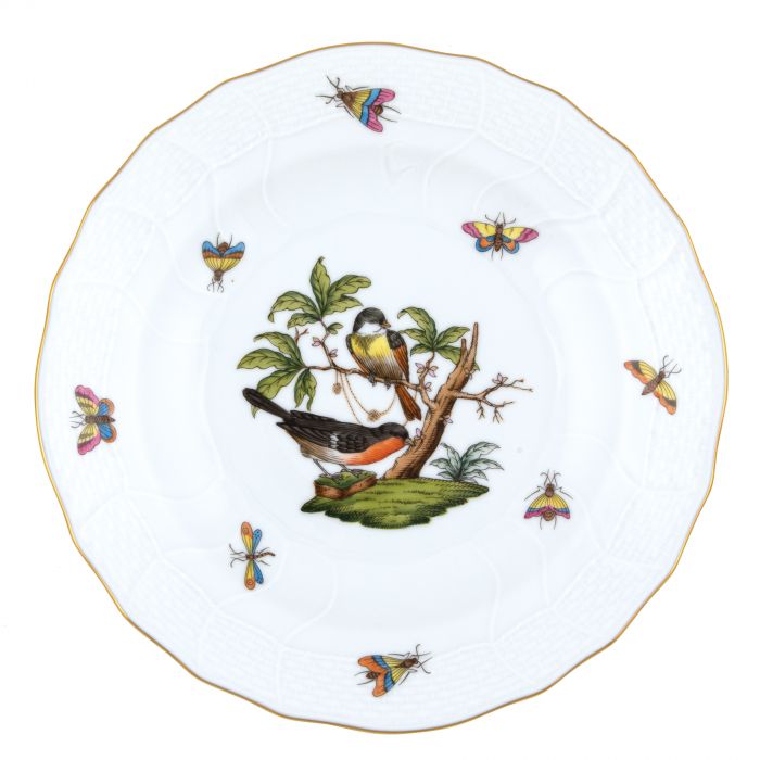 Many connoisseurs consider this pattern, first created in 1860 for the Rothschild family of Europe, to be the epitome of hand painting on porcelain. Twelve different motifs portray a 19th century tale about Baroness Rothschild, who lost her pearl necklace in the garden of her Vienna residence. Several days later it was found by her gardener, who saw birds playing with it in a tree.