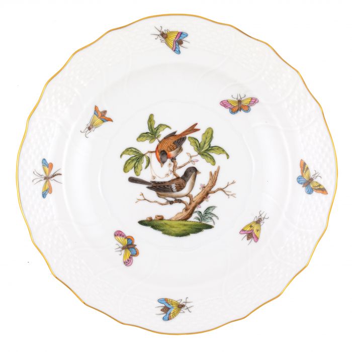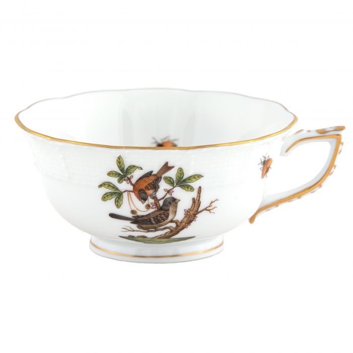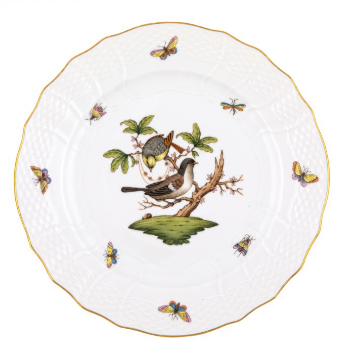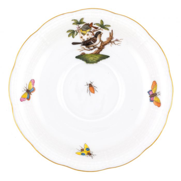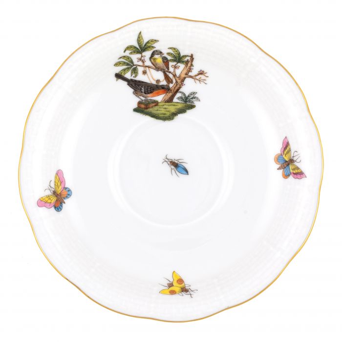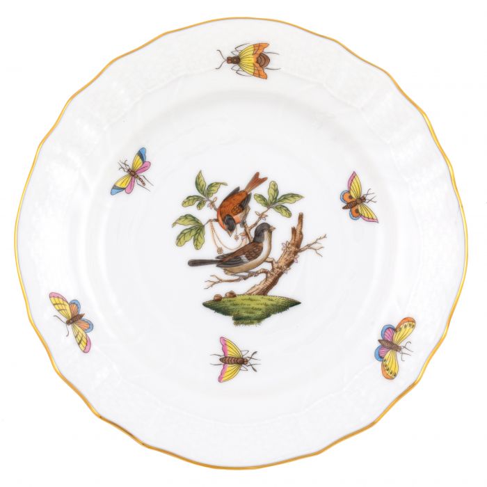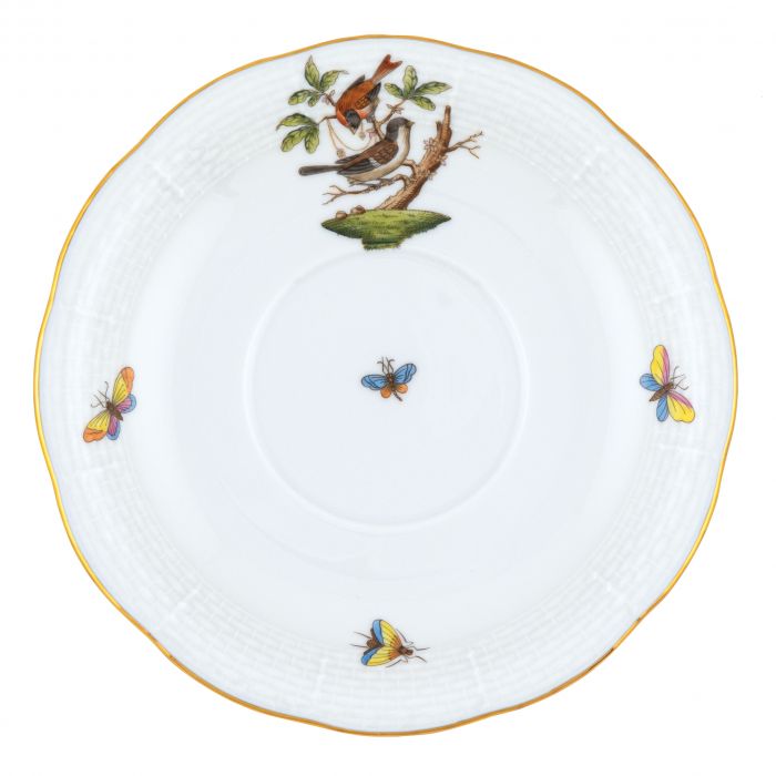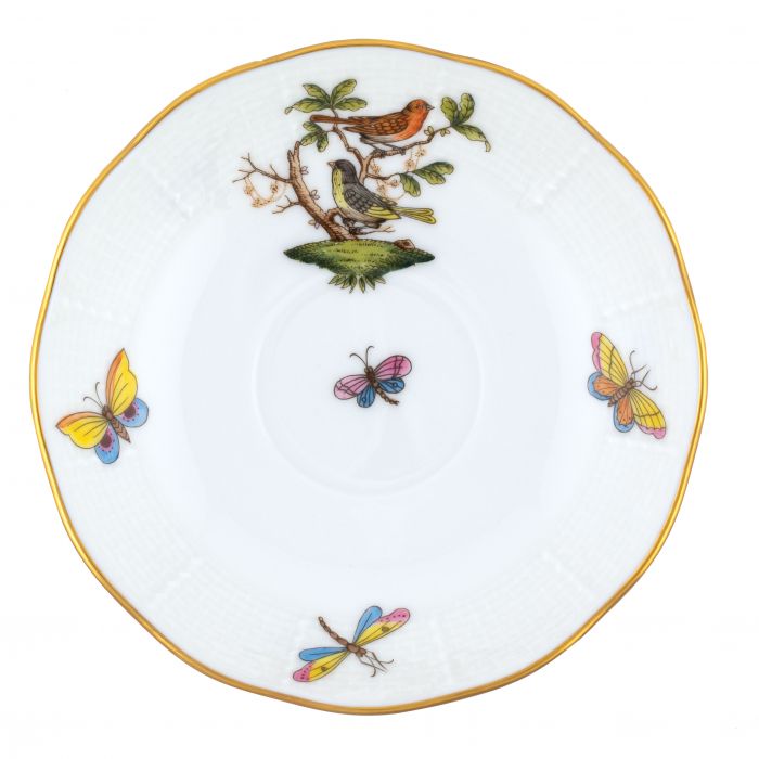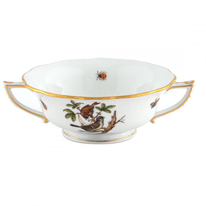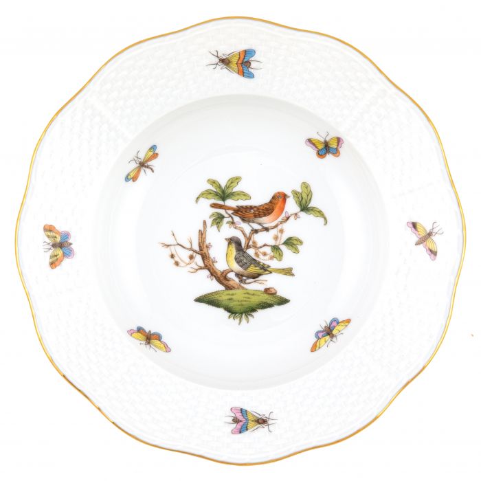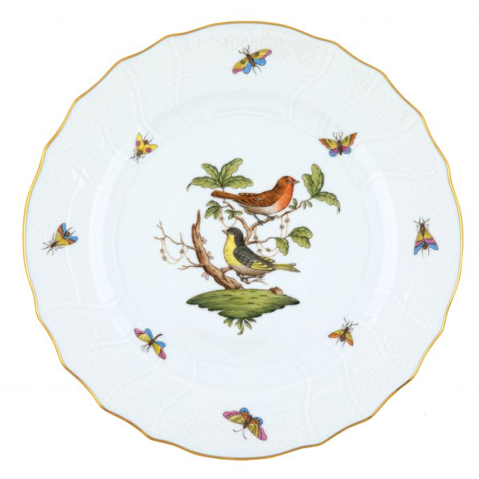 Many connoisseurs consider this pattern, first created in 1860 for the Rothschild family of Europe, to be the epitome of hand painting on porcelain. Twelve different motifs portray a 19th century tale about Baroness Rothschild, who lost her pearl necklace in the garden of her Vienna residence. Several days later it was found by her gardener, who saw birds playing with it in a tree.