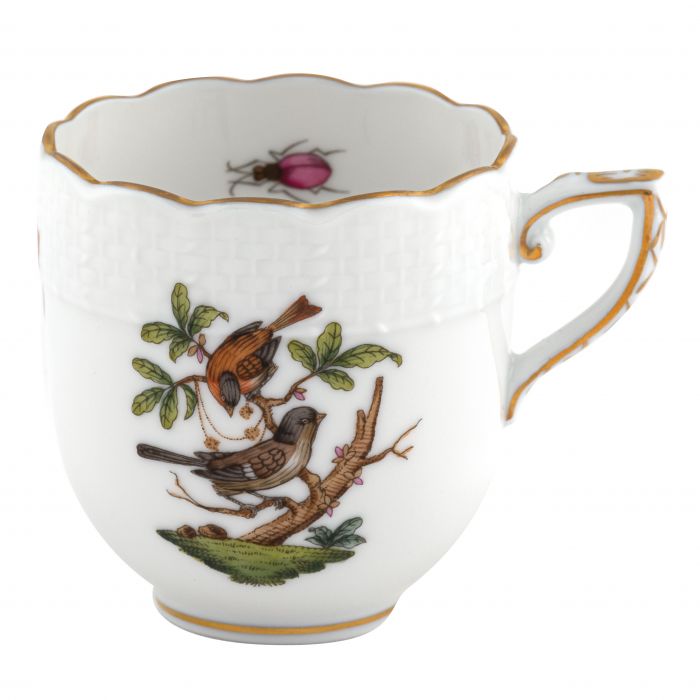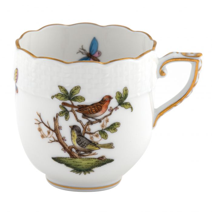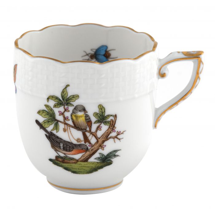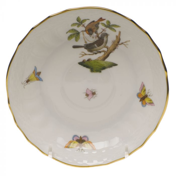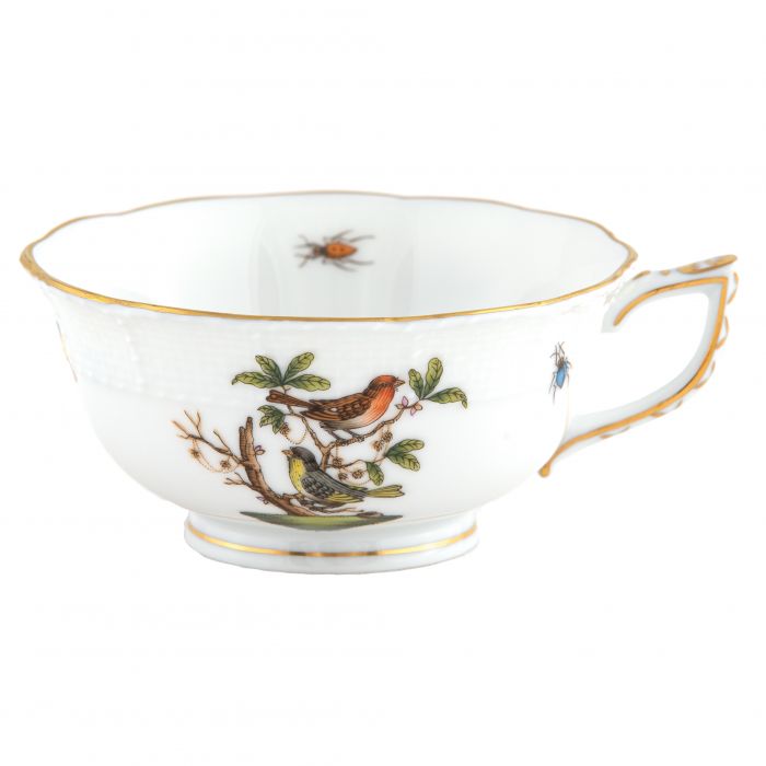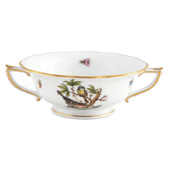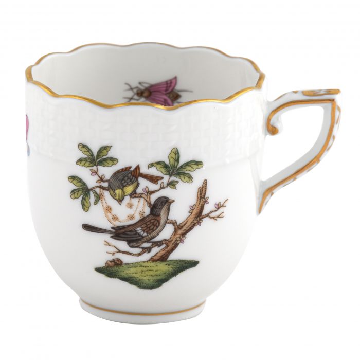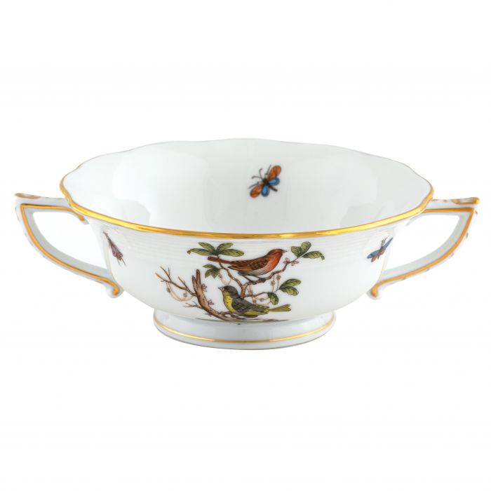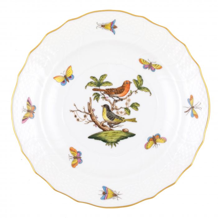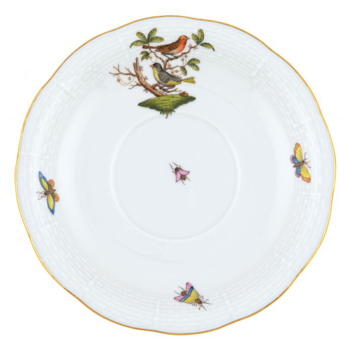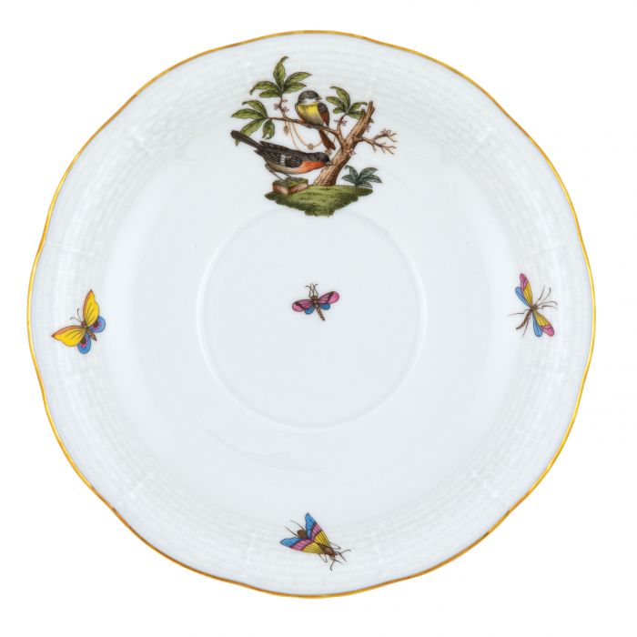 Many connoisseurs consider this pattern, first created in 1860 for the Rothschild family of Europe, to be the epitome of hand painting on porcelain. Twelve different motifs portray a 19th century tale about Baroness Rothschild, who lost her pearl necklace in the garden of her Vienna residence. Several days later it was found by her gardener, who saw birds playing with it in a tree.