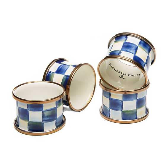 Can’t get enough of blue and white checks? Add Royal Check Enamel Napkin rings at each place setting! Hand-painted, with a bronzed stainless-steel rim, the boxed set of four makes a great gift.