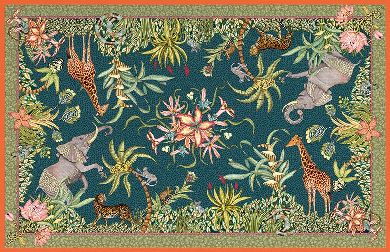 The cotton fabric is digitally printed onto a bleached base cloth for the most vibrant and detailed Ardmore prints. The satin weave cotton has a luxuriously soft feel and we suggest treating it with care to preserve the vibrant colors.