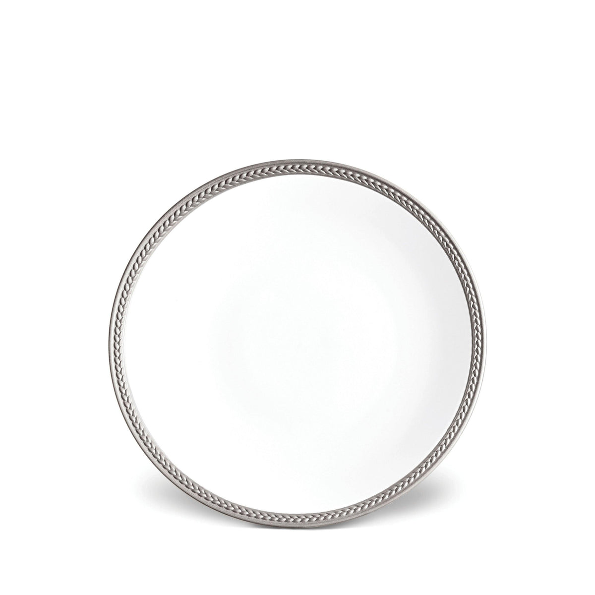 Soie Tressée, French for "Silk Braid," is a modern expression of a timeless classic and offers a contemporary look on an ancient shape. Made of porcelain, this dinnerware collection is available in white or with the braids beautifully accentuated in hand-gilded 24K gold, platinum, or black.