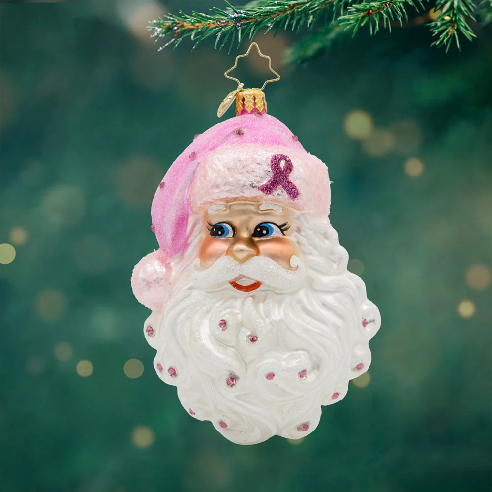 This unique Santa head features a pink ribbon and thoughtful details that highlight the importance of breast cancer awareness. It’s a heartwarming way to show your support and spread a message of hope and solidarity during the holidays.