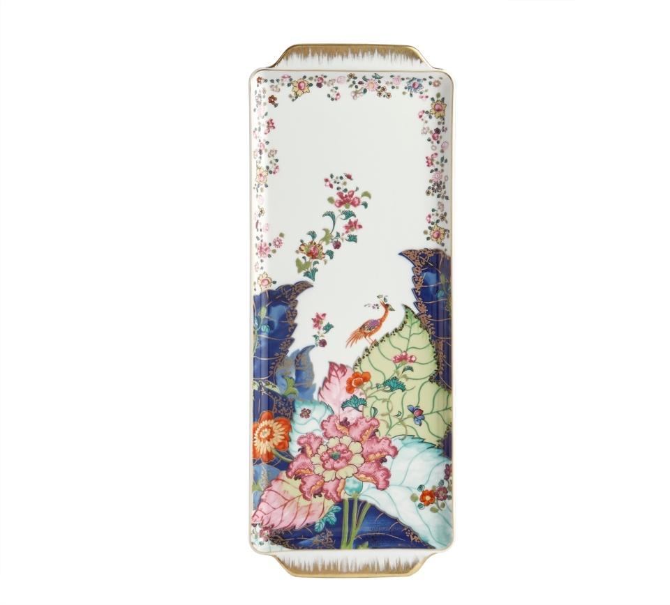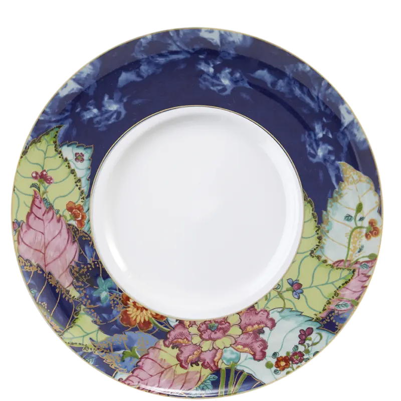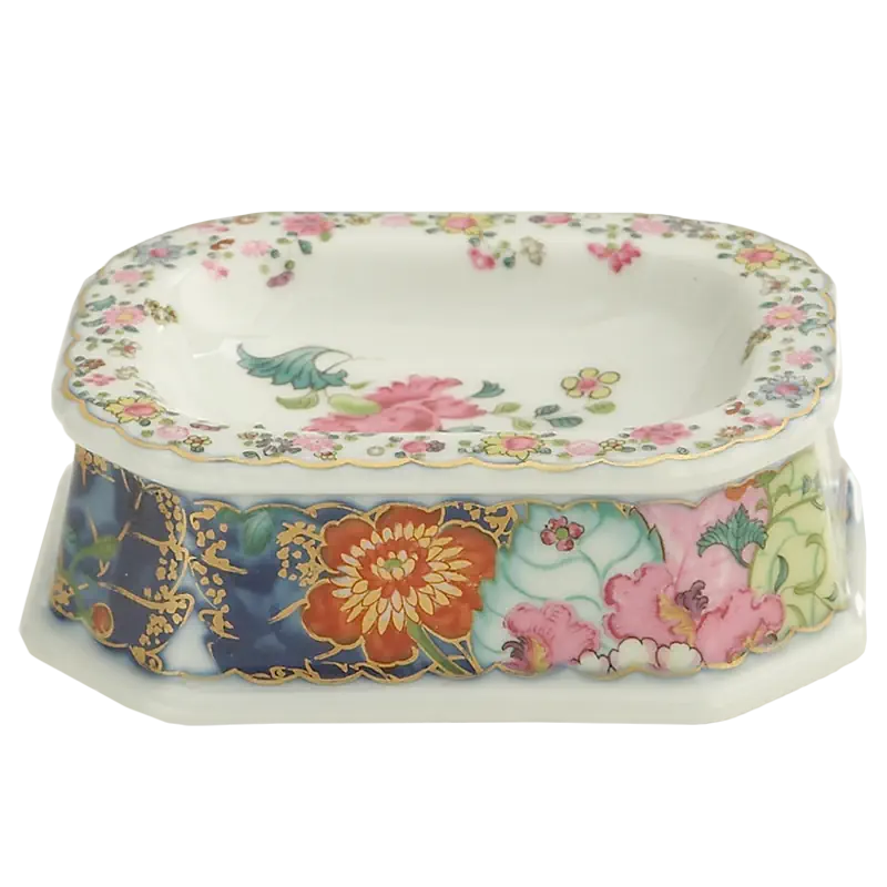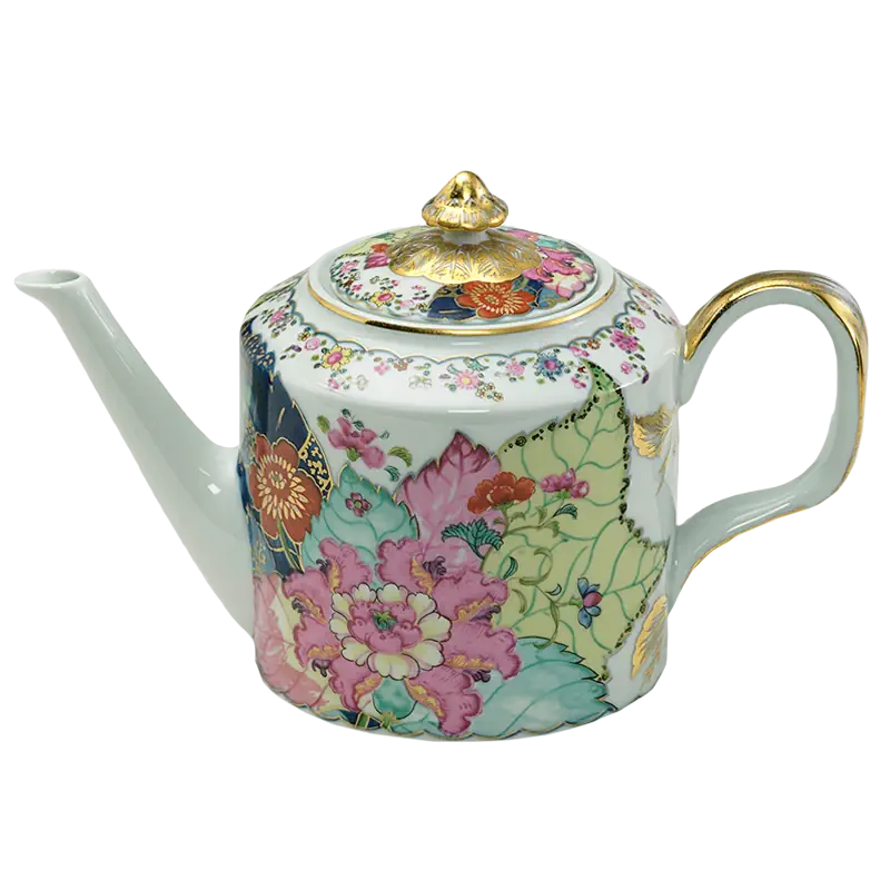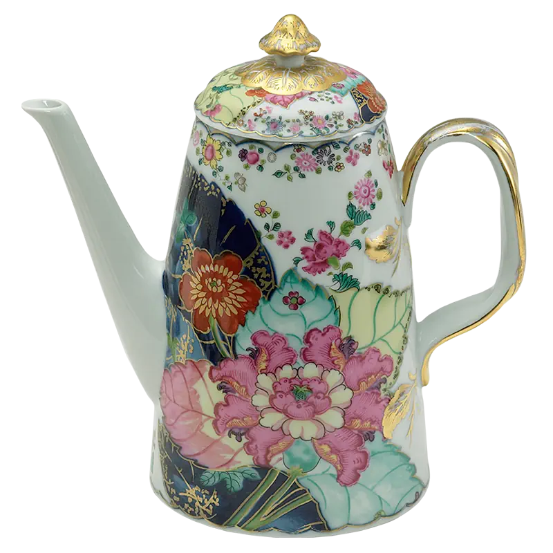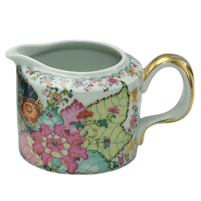 This extravagant design was originally made in China, probably for export to the Portuguese and Brazilian markets. Of all the 18th century dinner patterns, this was the most highly prized. A small phoenix bird perches on the leaves of the flowering Nicotiana (Tobacco) plant. Twenty-seven colors and 22k gold make up this pattern based on an original in the Metropolitan Museum of Art. This pattern, one of the longest running patterns by Mottahedeh, continues its strong popularity today, showing that good design is timeless.