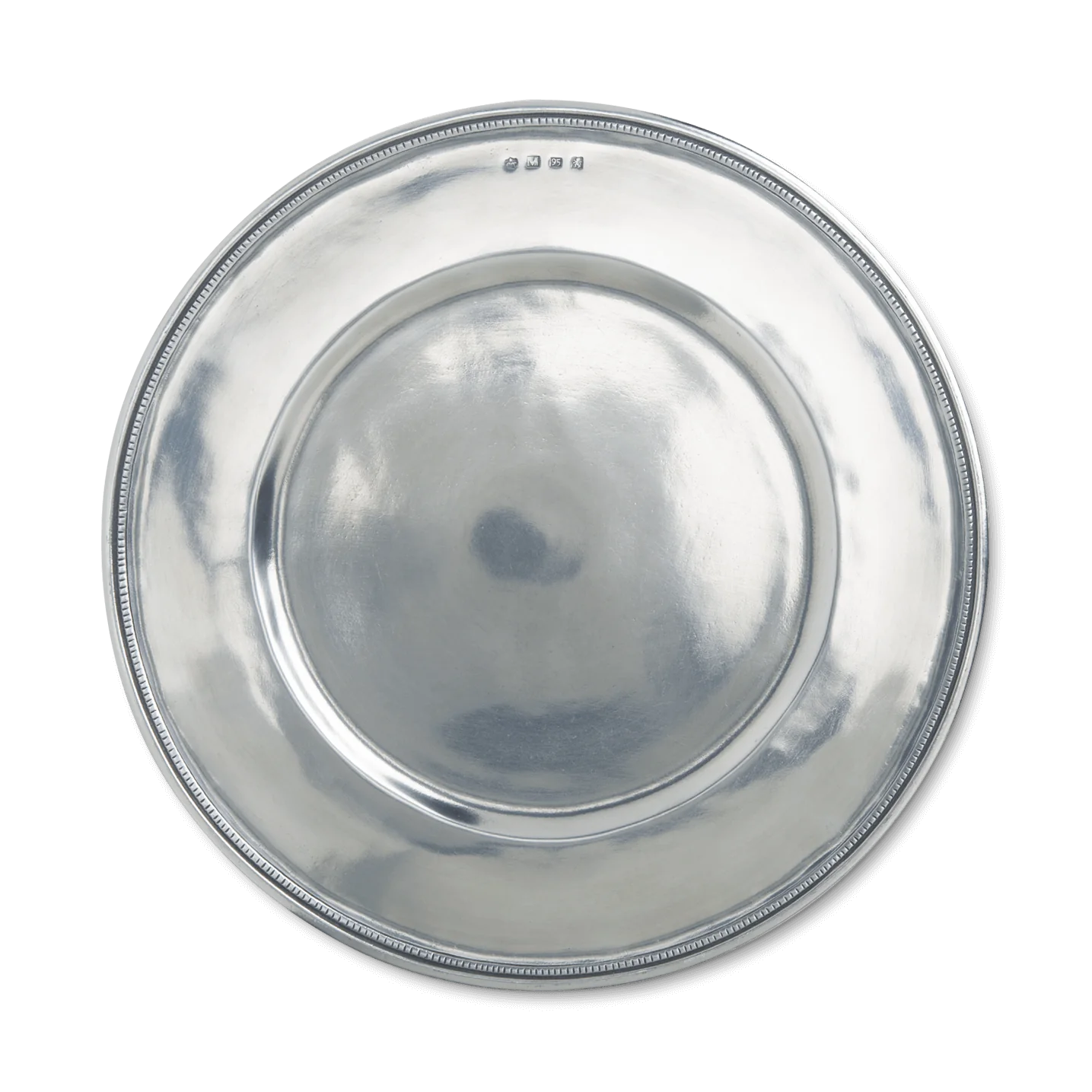 Featuring beaded details inspired by a 16th century Tuscan design, the Toscana charger brings an elegant focal point to each place setting, making it all the more welcoming. Our all-pewter chargers also make great service trays for passing around tempting nibbles before the main event.