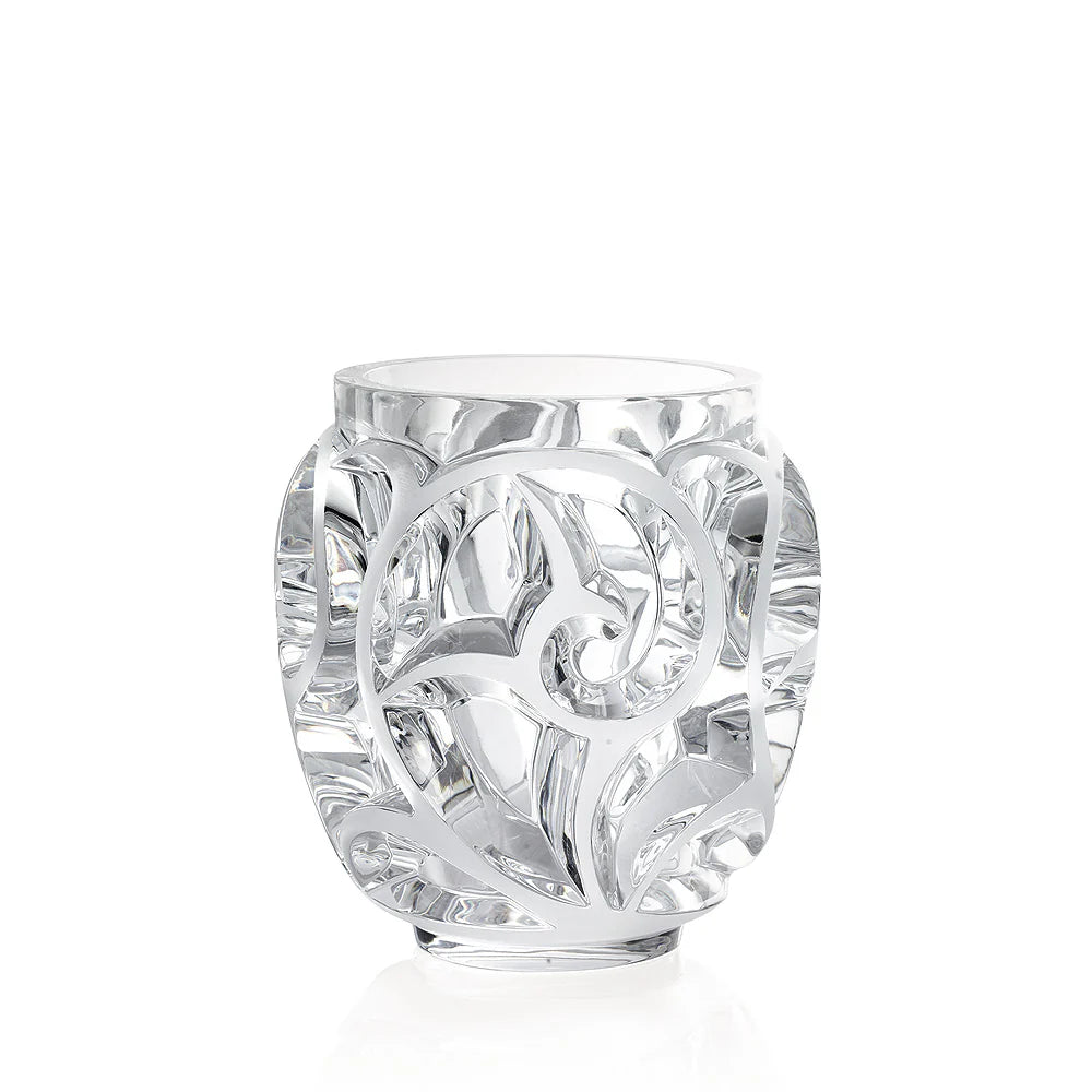In 1926 Rene Lalique created the Tourbillons Vase. Inspired by movement of the fern blossom, its abstract design allows for the utmost freedom of interpretation. Graphic and poetic, its curves stunningly follow the rhythm of light, drawing the eye into swirls of crystal.