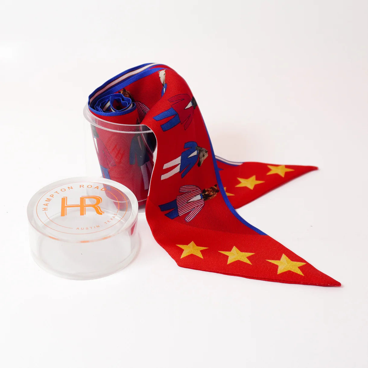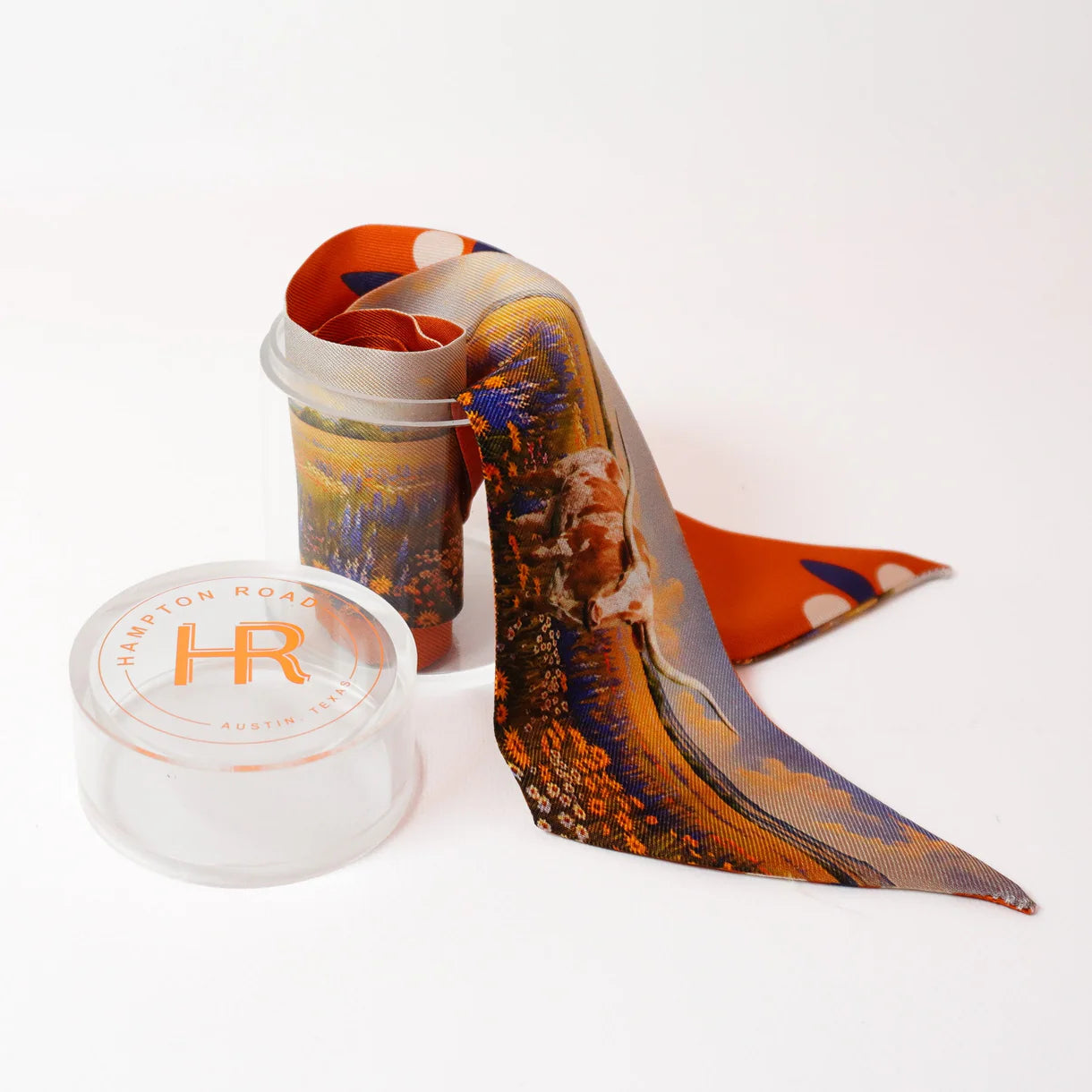 An elegant blend of tradition and modernity, theHampton Road Silk Twillionaire Scarf Setincludes a pure silk scarf and a gold-tone horseshoe-shaped scarf ring, thoughtfully packaged in a sleek acrylic tube for gifting or display. Inspired by classic equestrian motifs and timeless Americana, the scarf features a signature Hampton Road print on luxurious silk twill. Its slim, elongated silhouette is perfect for styling around the neck, wrist, hair, or handbag.