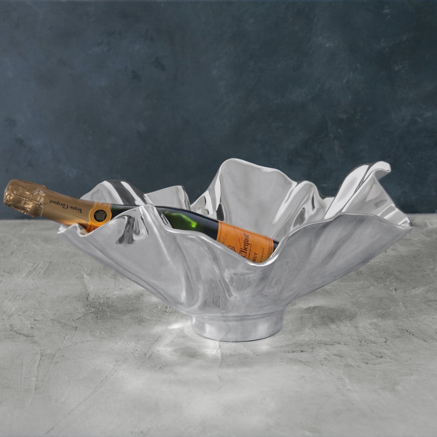 The VENTO Bloom Wine Bucket in polished metal is a wine bucket like no other. With rippling petal-like movement, the dynamically designed serving vessel combines beauty, artistry and functionality. Makes a stellar centerpiece.