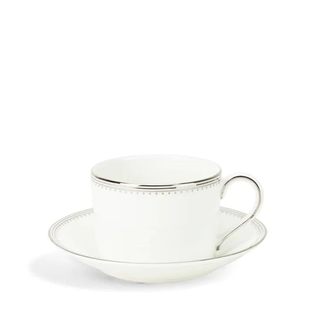 Inspired by the subtle romantic touches that renowned New York designer Vera Wang uses to trim her world-famous bridal gowns, the Grosgrain collection showcases beautifully translucent fine bone china with elegant and graceful design details. Decorated with lustrous platinum border trims reminiscent of delicate needle lace, this collection brings sophistication and sensual elegance to any dining occasion.
