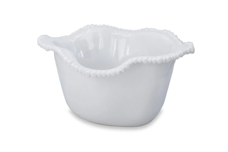 From the popular Alegria Collection of luxury melamine, an ice bucket ideal for serving bottles of chilled wine. Celebrate in style with VIDA Alegria Ice Bucket (White), made of luxury melamine with the look of fine ceramics. Edged with a border of rippling pearls, the generously proportioned piece is designed to serve icy-cold bottles of wine, beer, or soda that guests will enjoy from a serving piece they will love. Dishwasher safe, heavy-weight, food safe, BPA and PABA free.