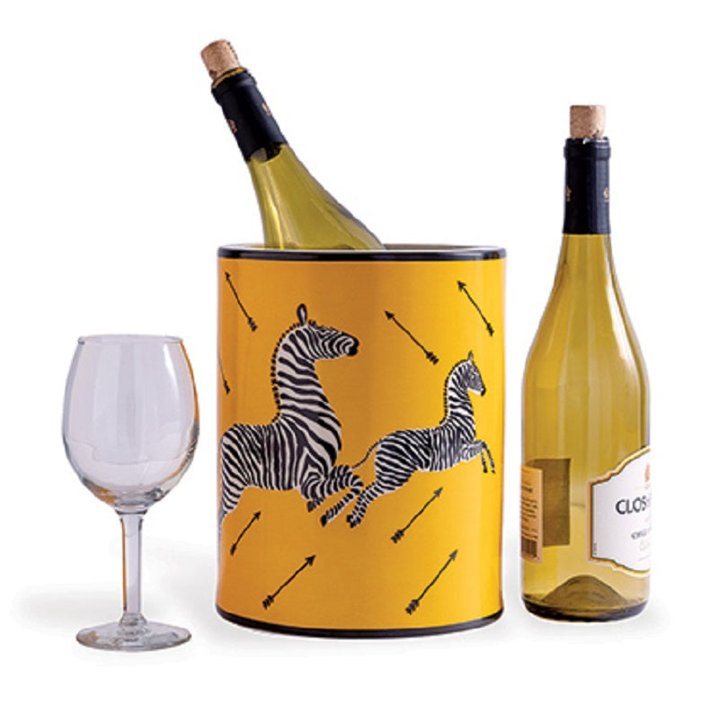The Scalamandre zebra ice bucket in the color of yellow is your pop of color for the bar or buffet. Just add a bottle of champagne or vodka! You may also use the container as a dramatic and colorful vase for that special floral arrangement.
